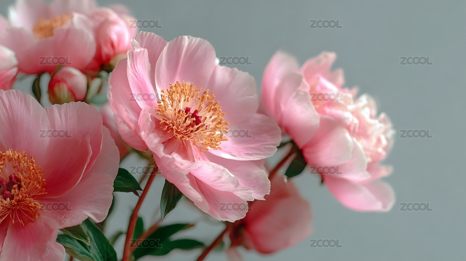 淡雅牡丹花束特写