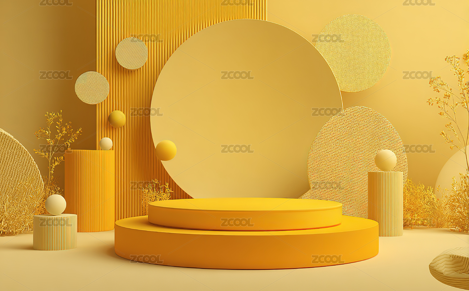 黄色几何形状的抽象展示场景