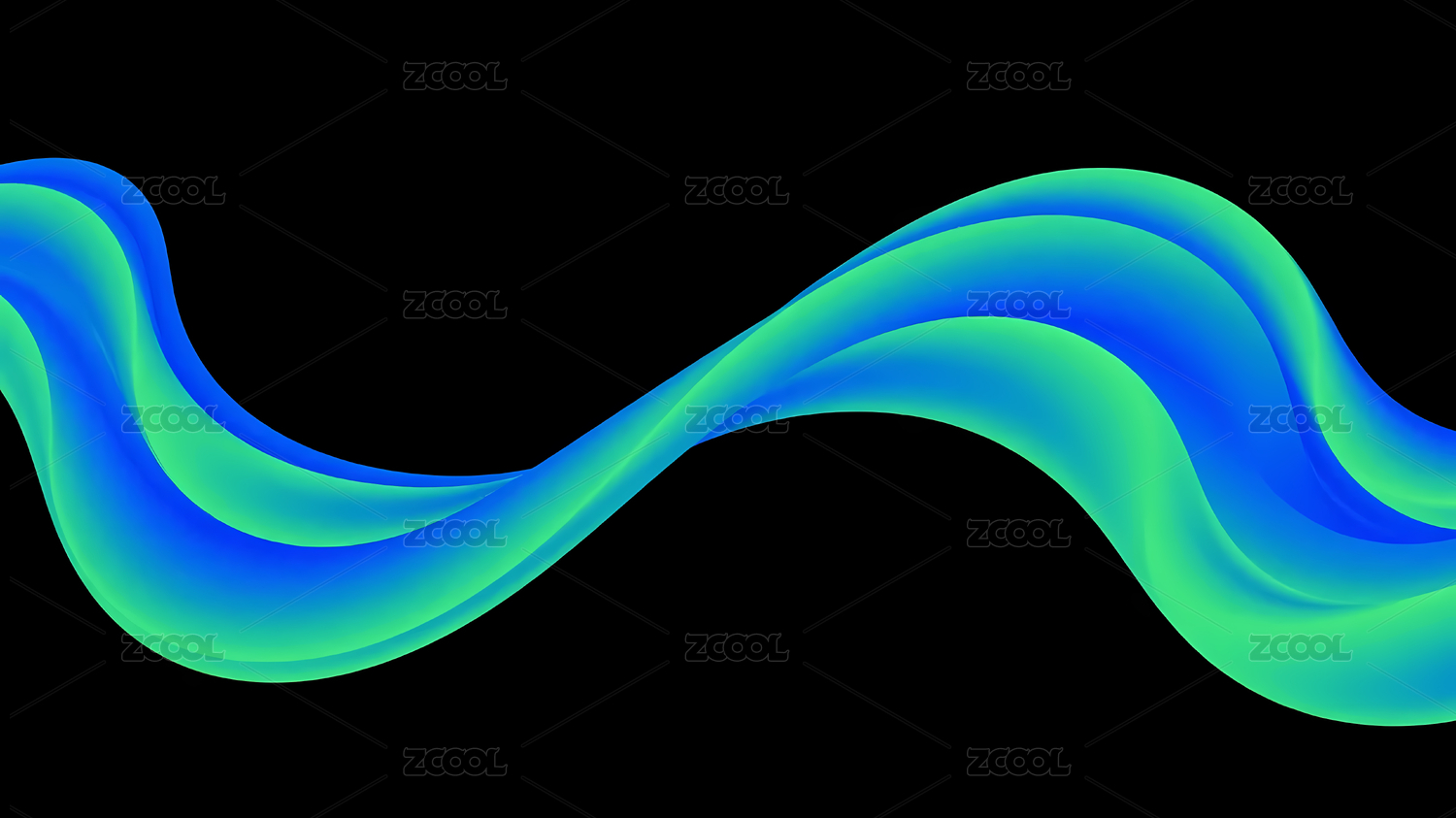 蓝绿渐变波浪曲线与黑色背景