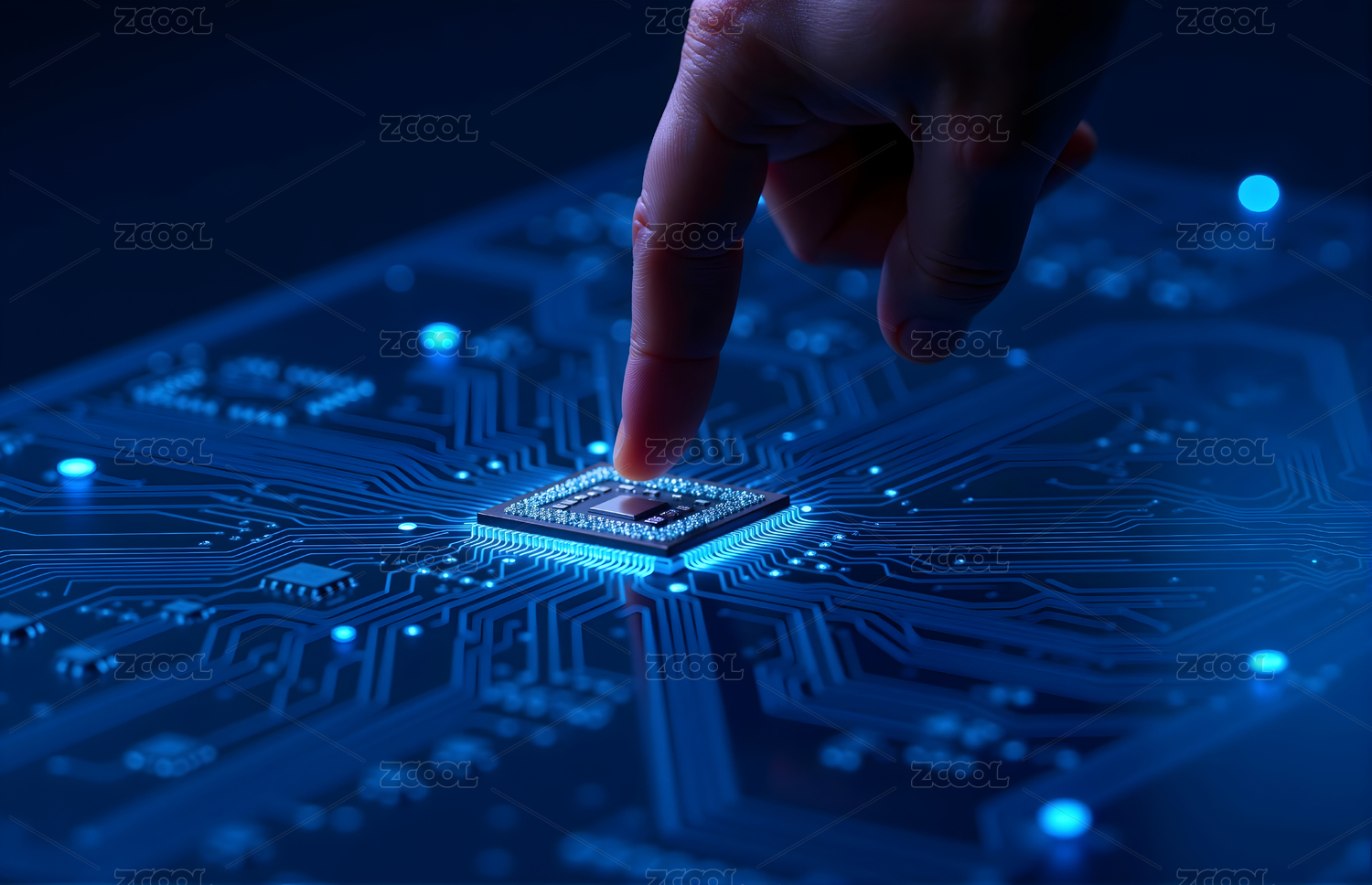 手指触碰发光芯片科技感十足