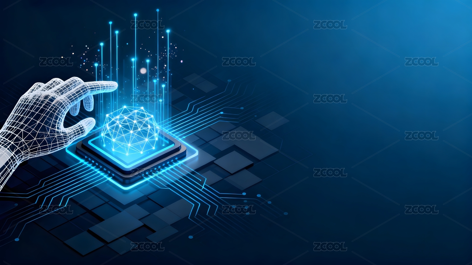 科技感AI芯片与手部触控