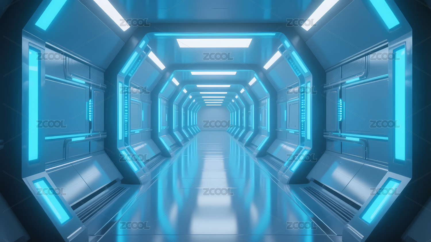 蓝色,冷色,科技,背景,未来,设计,灯光,窗户,走廊,简洁