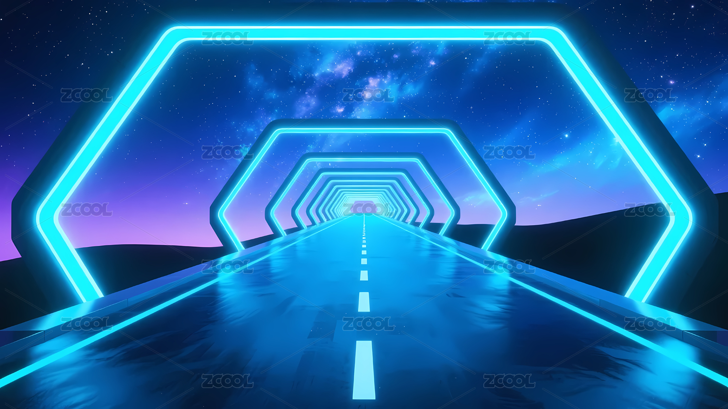 未来粉蓝霓虹星空隧道