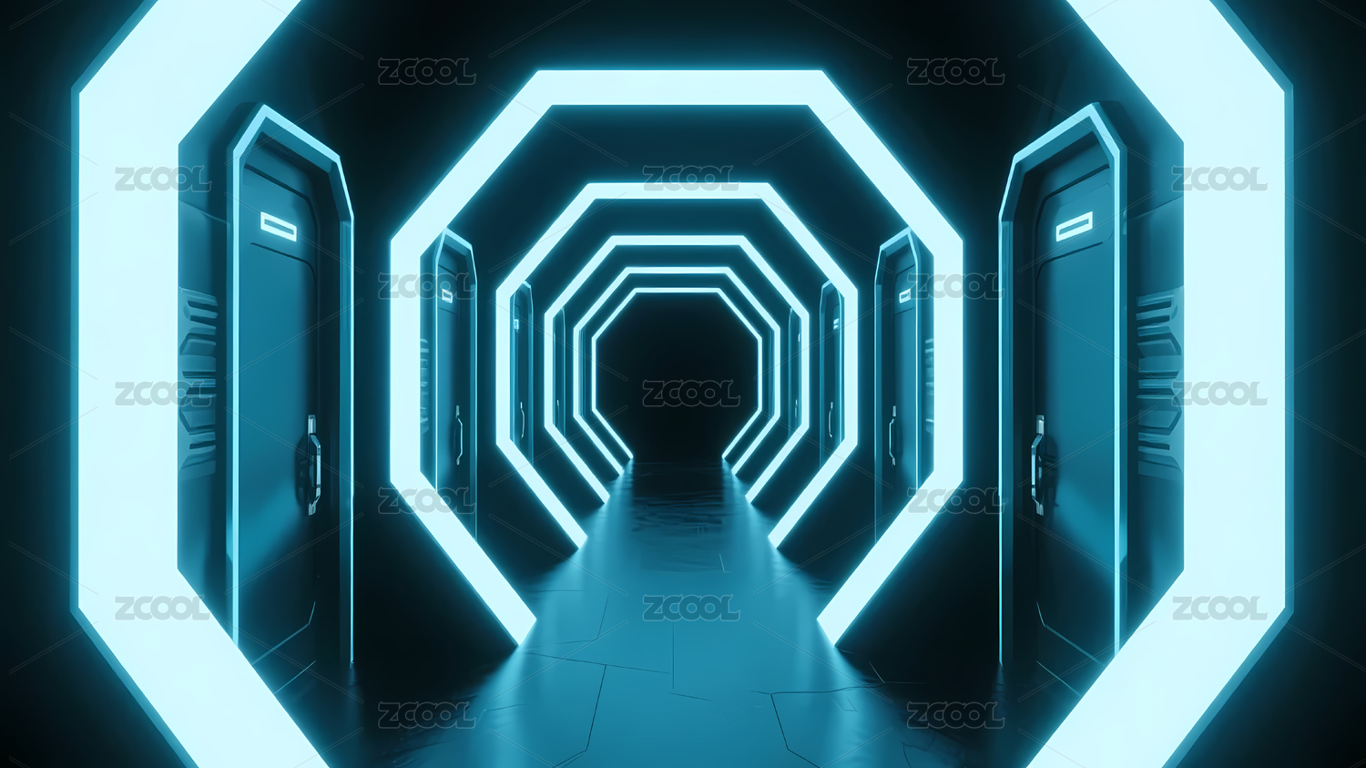 蓝色荧光八边形隧道