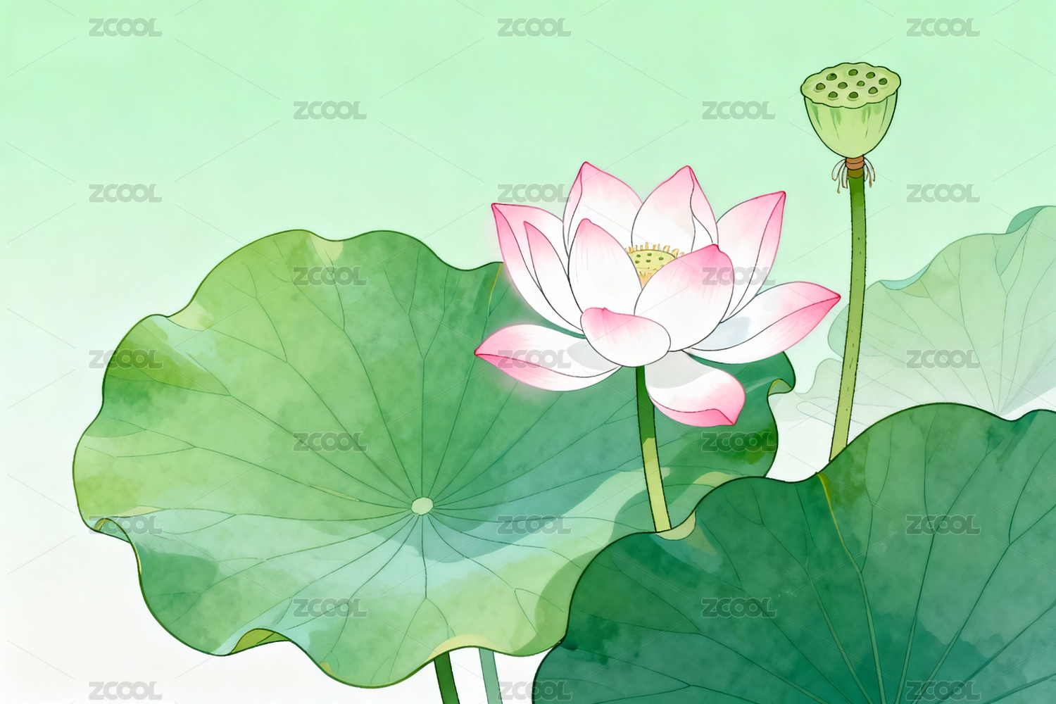 荷花,荷叶,粉色,绿色,插画,矢量,自然,花卉,装饰,植物