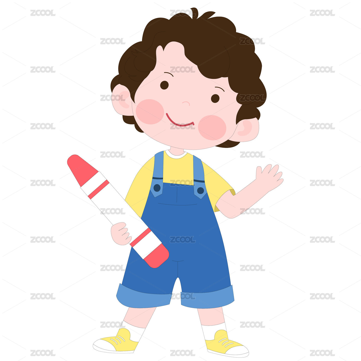 卡通风开学季穿着背带裤拿着画笔的男孩插画
