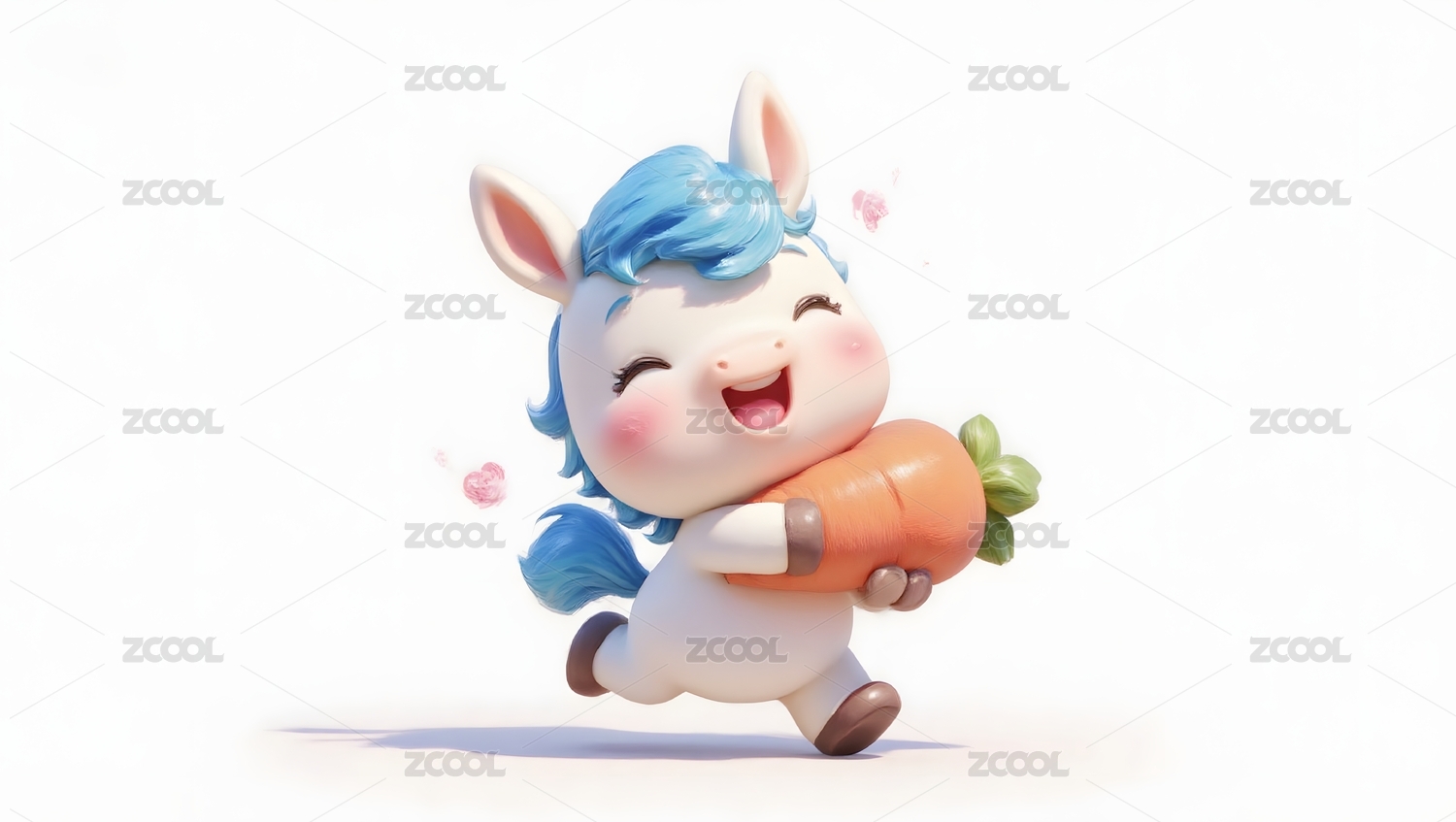小马,卡通,可爱,形象,蓝色,头发,动物,活泼,白色,笑脸
