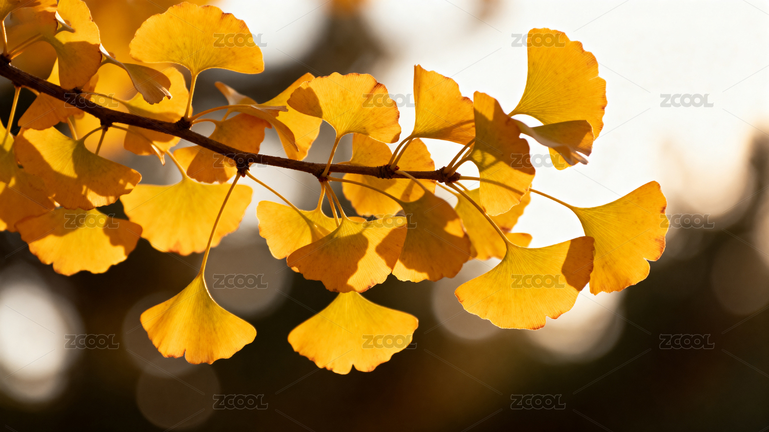 背景,植物,生长,光斑,模糊,阳光,温暖,黄色,自然,银杏