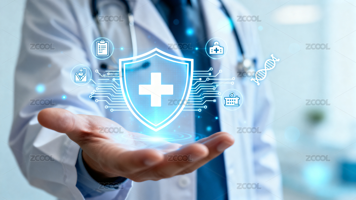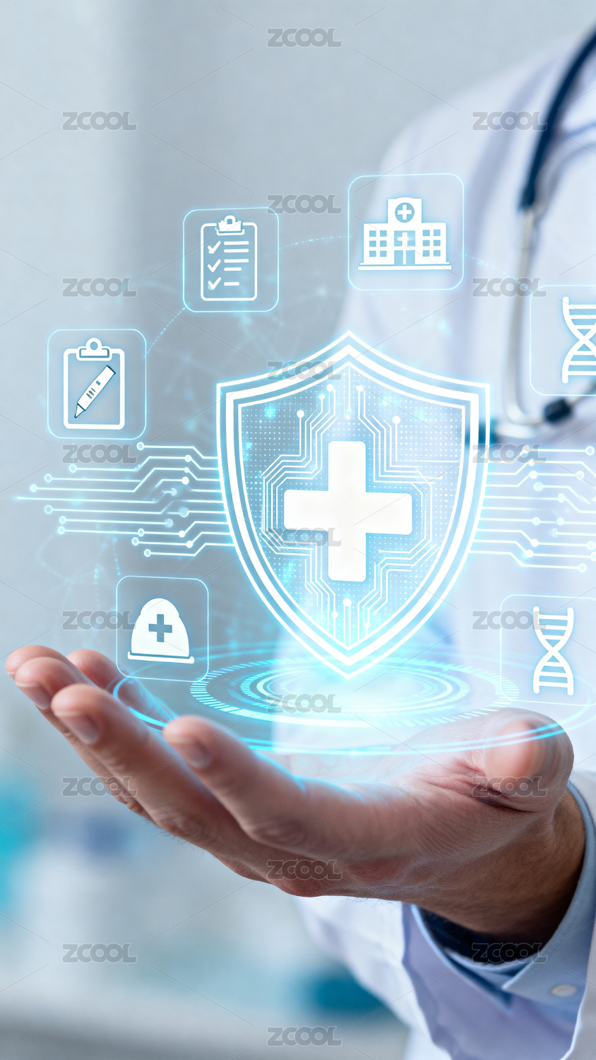 医生手中的科技医疗盾牌