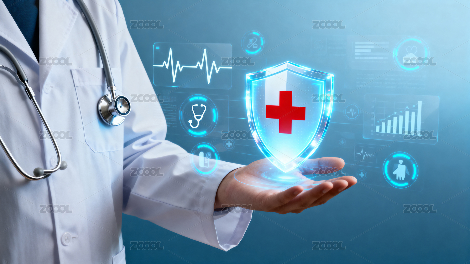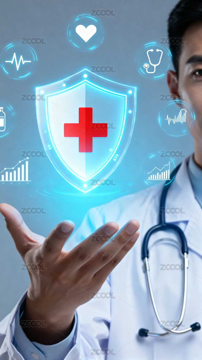 医生展示医疗科技盾牌