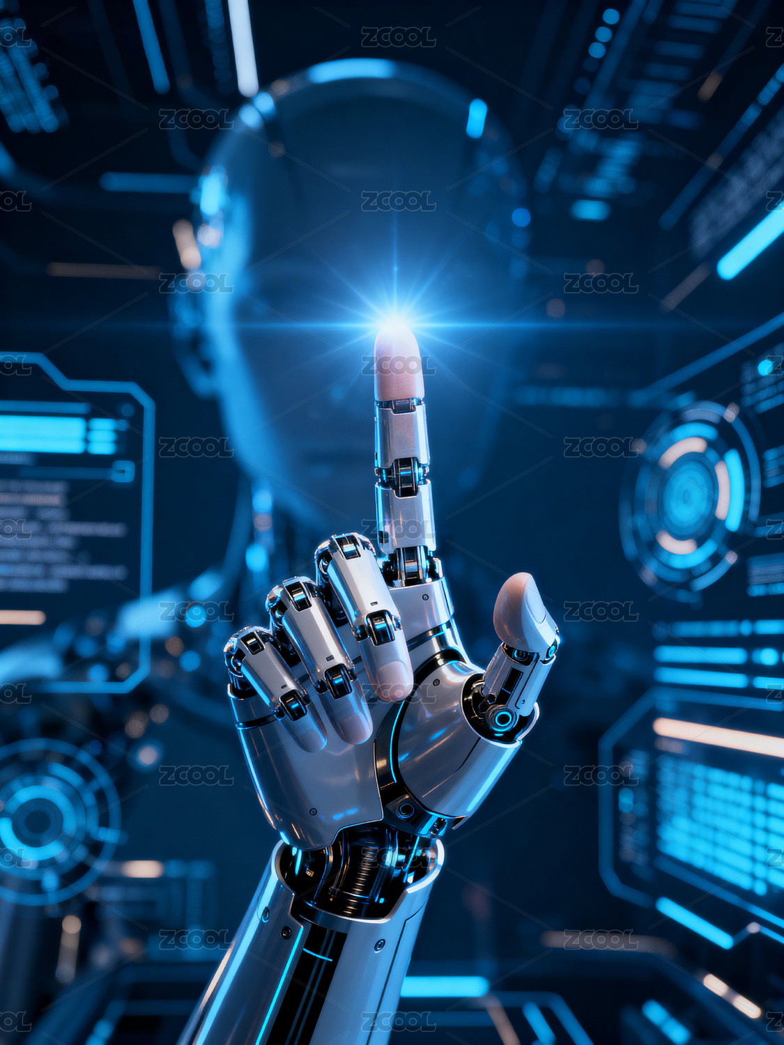 机器人手指触碰科技界面