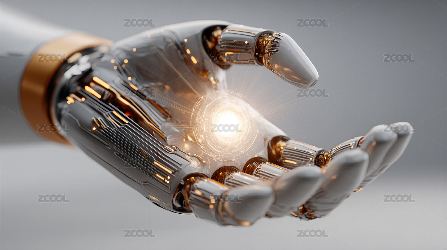 机械手掌托举发光球体
