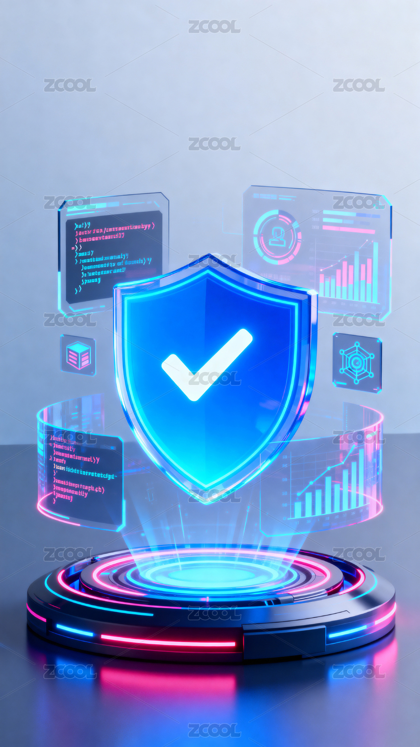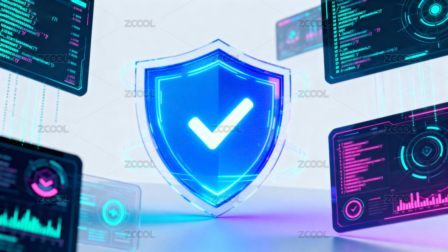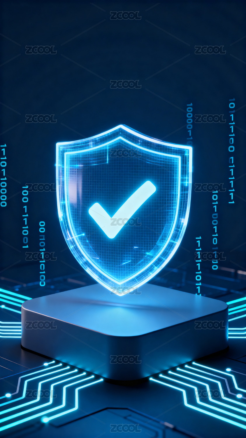 数字,线条,光效,盾牌,蓝光,紫光,防护,圆环,对勾,符号