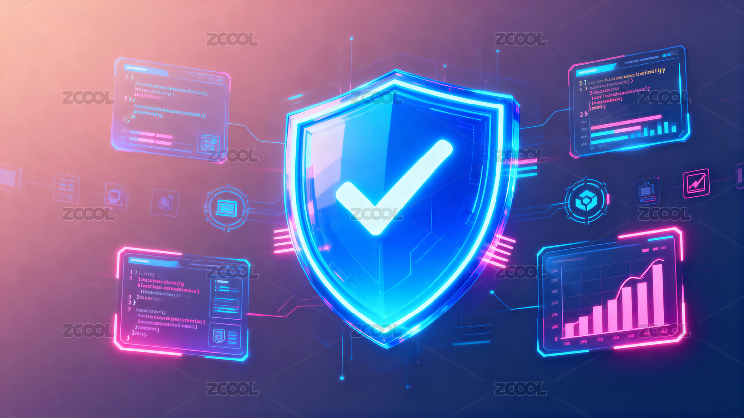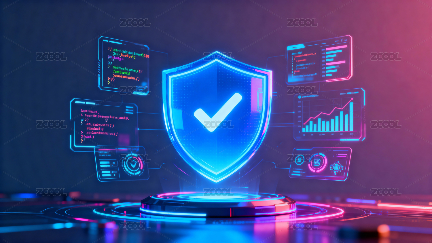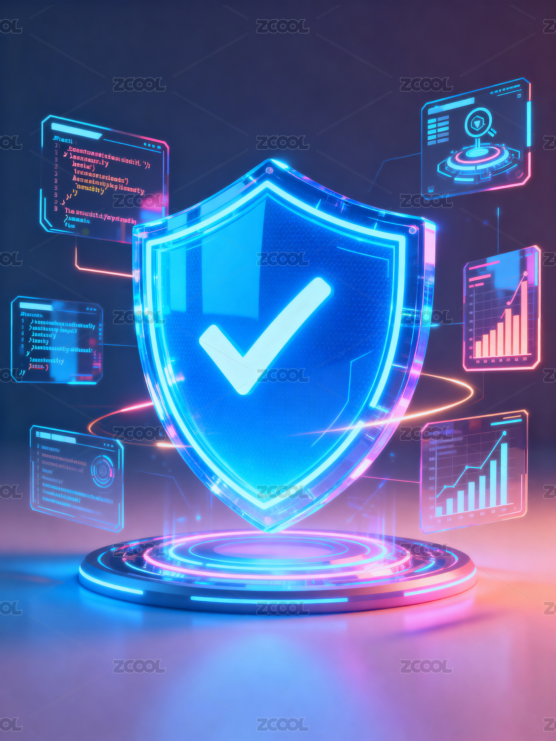 数字,线条,光效,盾牌,蓝光,紫光,防护,圆环,对勾,符号