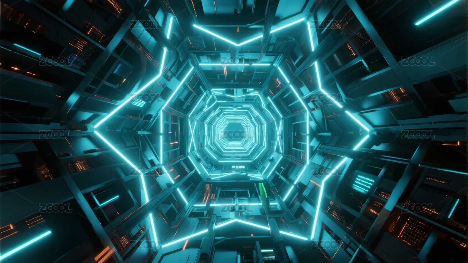 橙色与青色光效的科技隧道