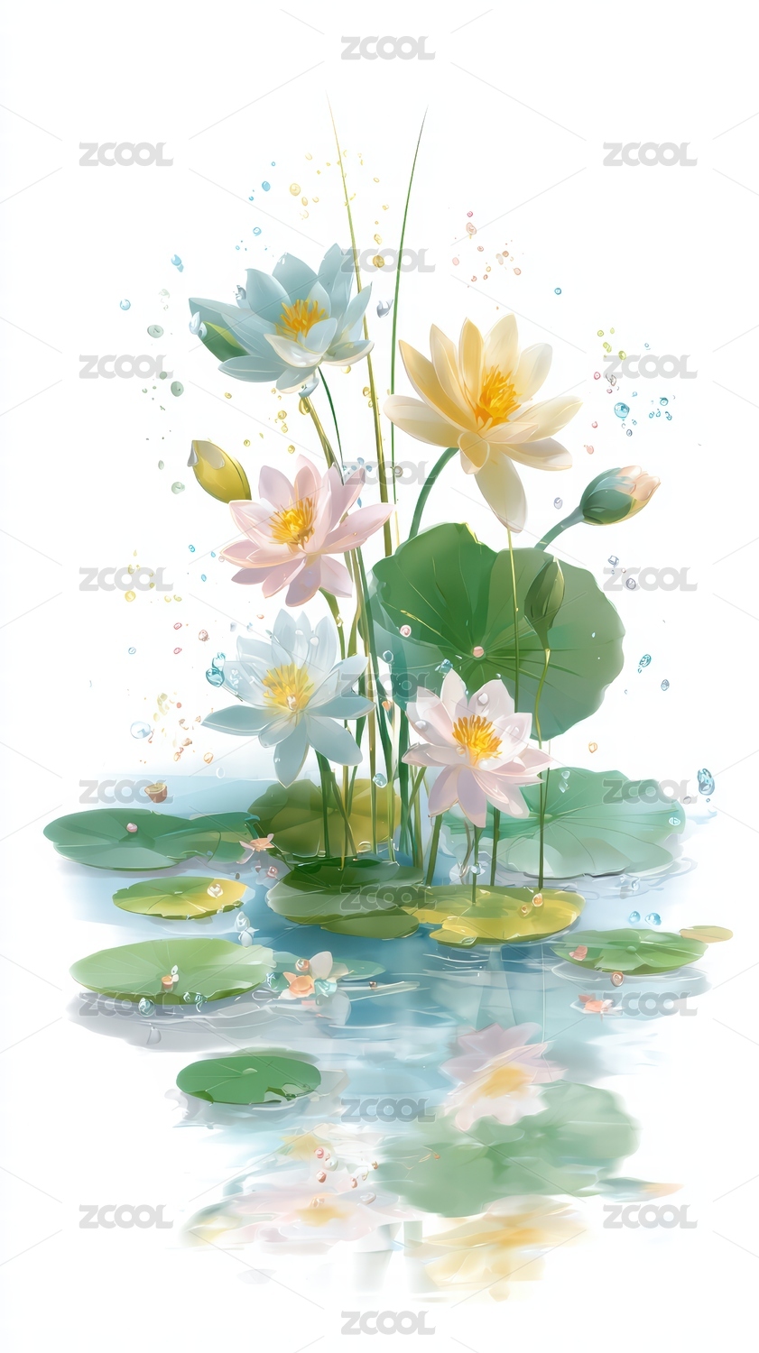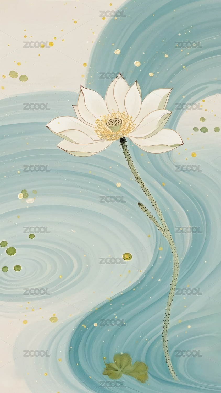 花瓣,蓝色,白色,自然,植物,光影,水面,倒影,传统,东方