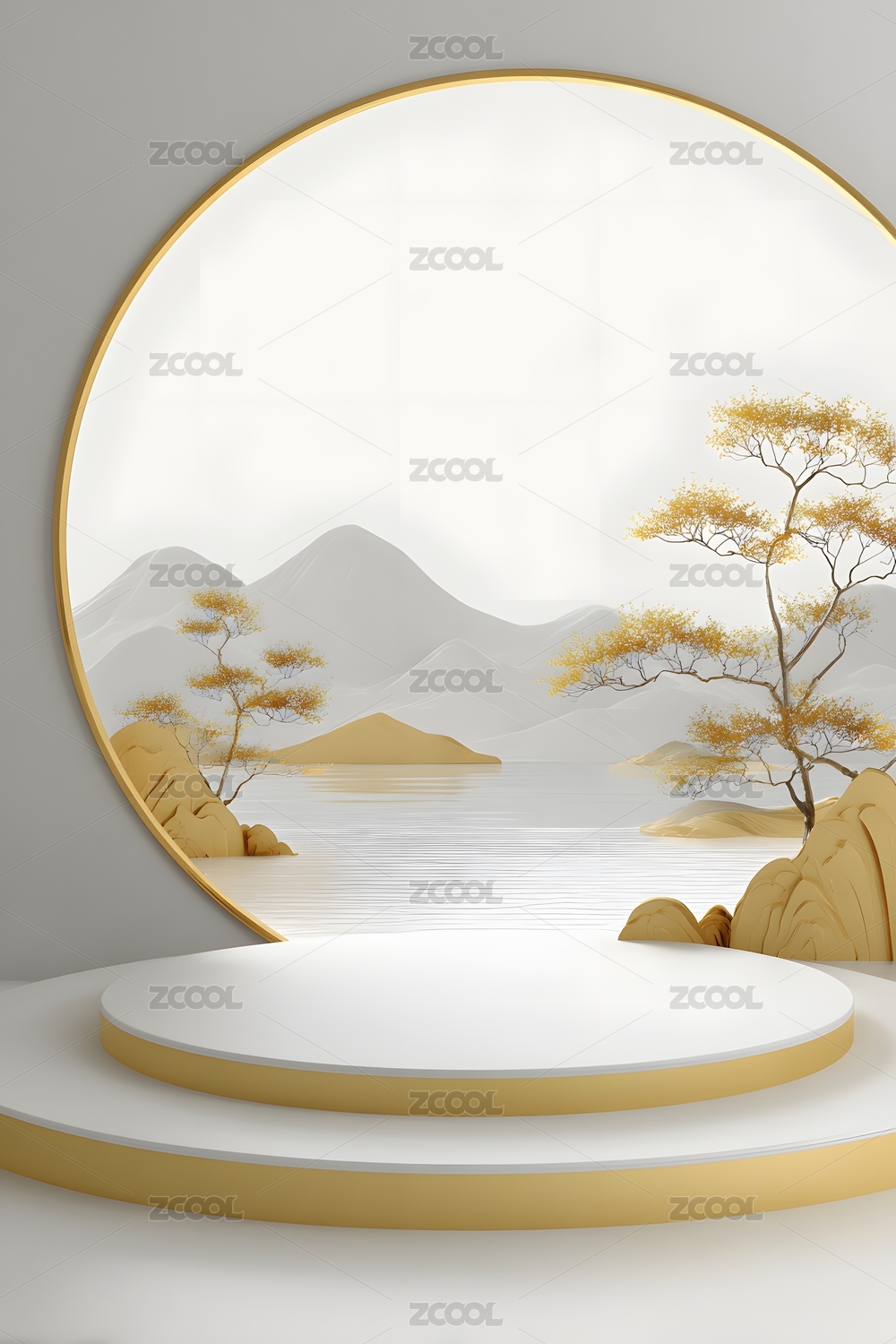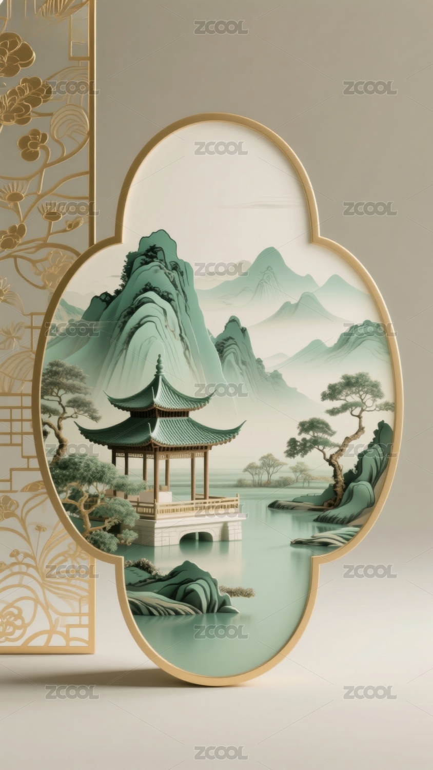 艺术,自然,山峰,云雾,树木,近景,风景,装饰,意境,水墨