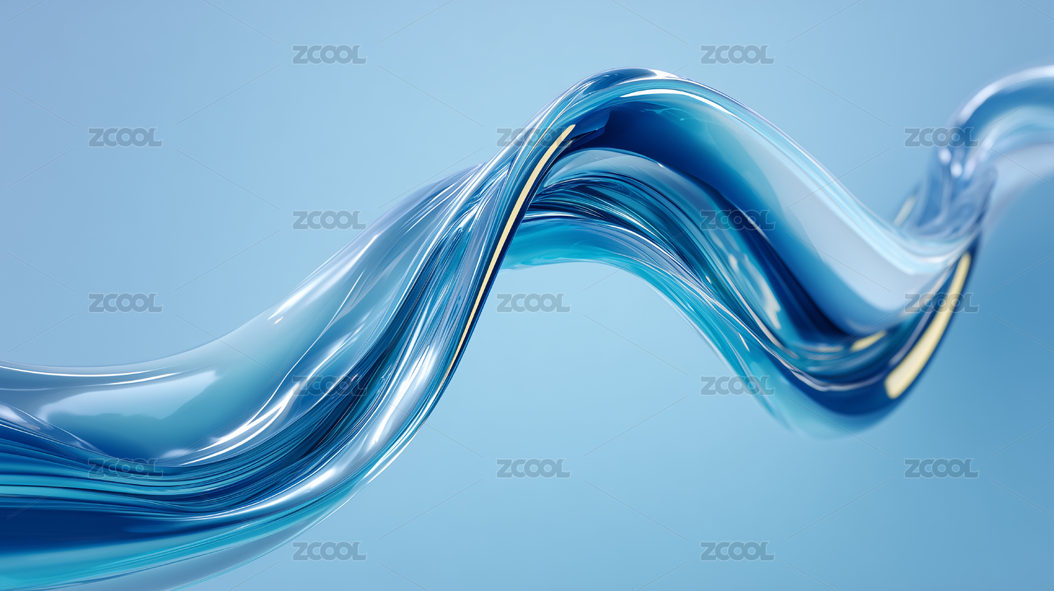 蓝色水流舞动柔美,纯净清澈抽象意境
