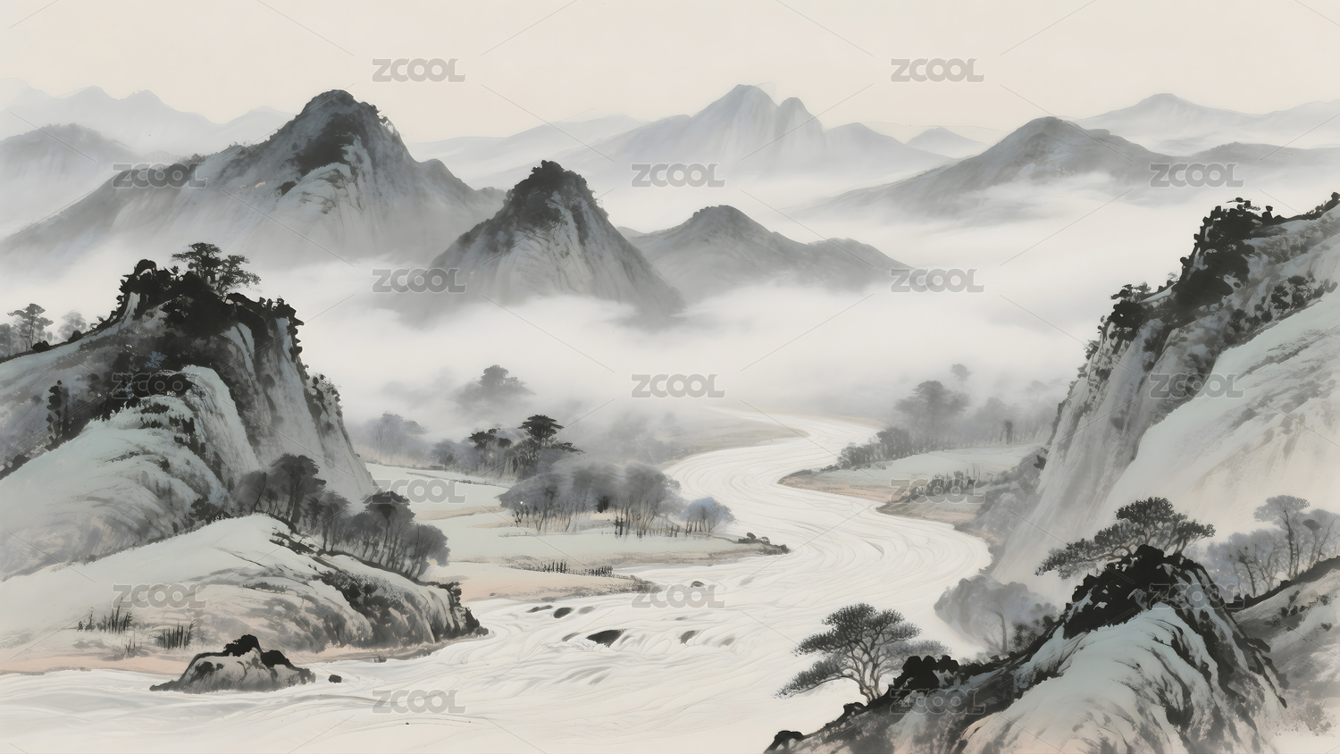 水墨山水风景图