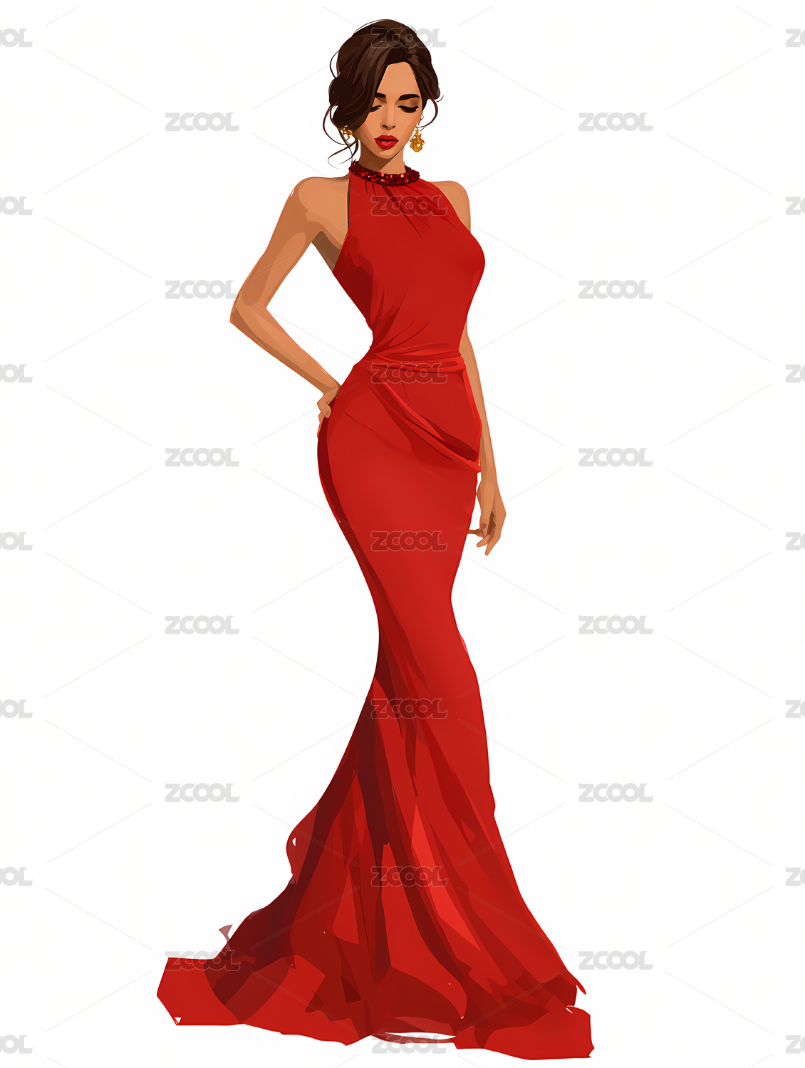 红色,晚礼服,优雅,修身,长裙,女性,魅力,晚宴,服饰,美丽
