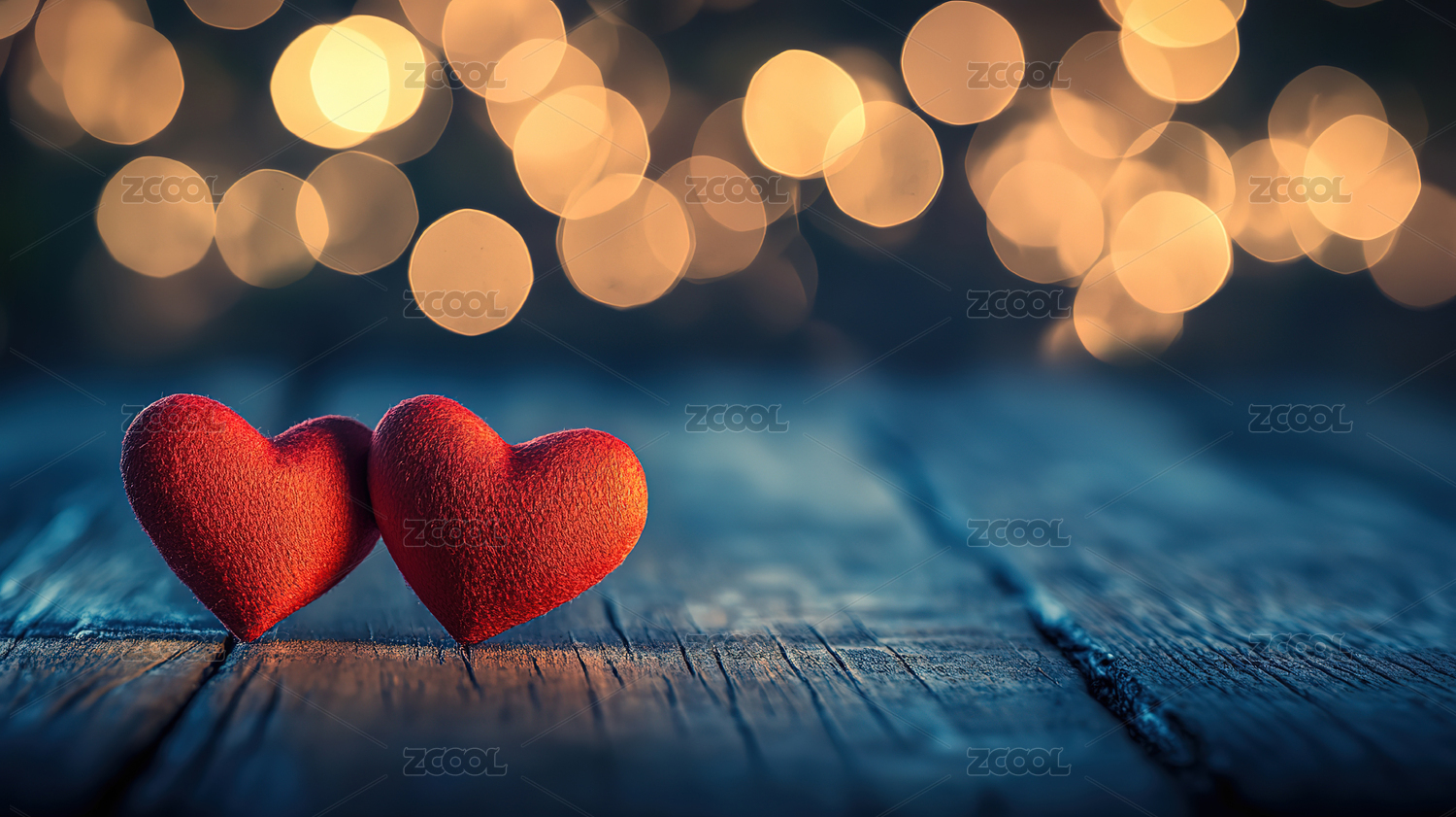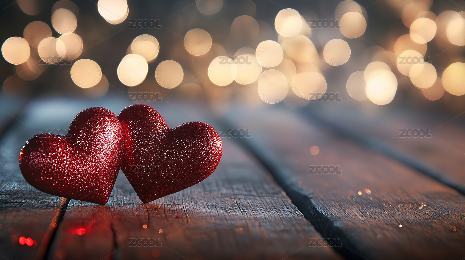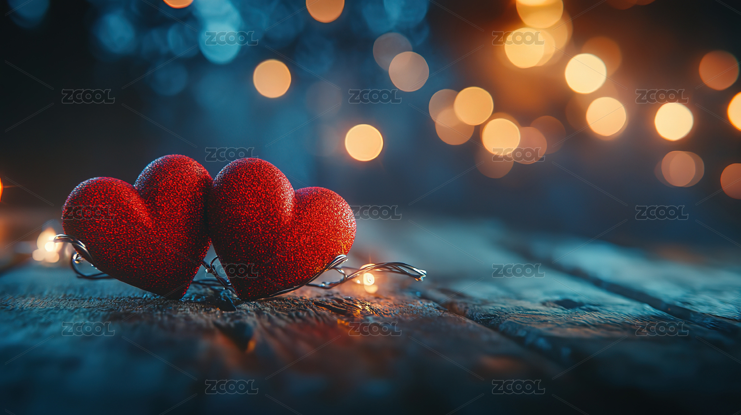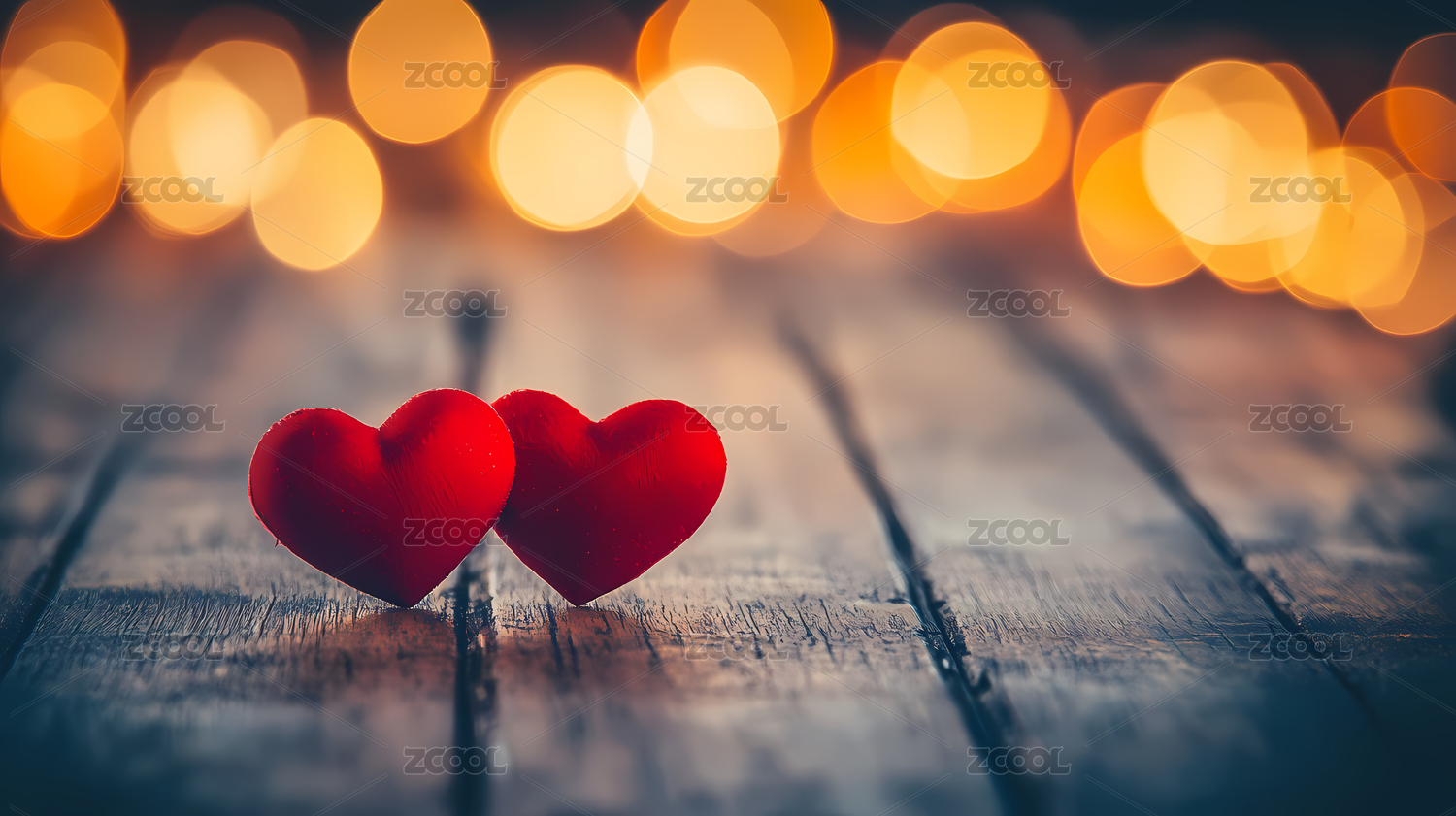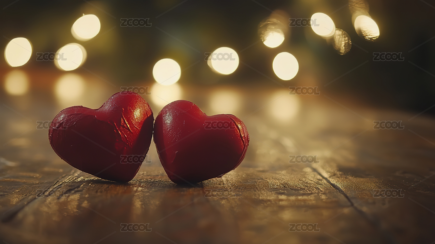 红心,爱心,两颗,红色,心形,物体,木质,背景,桌面,纹理