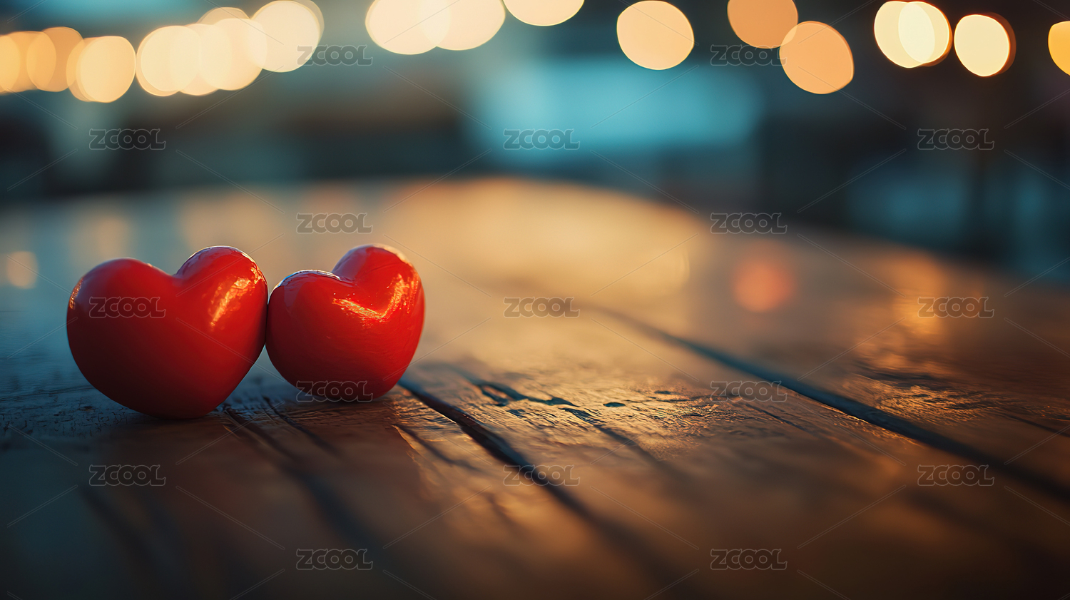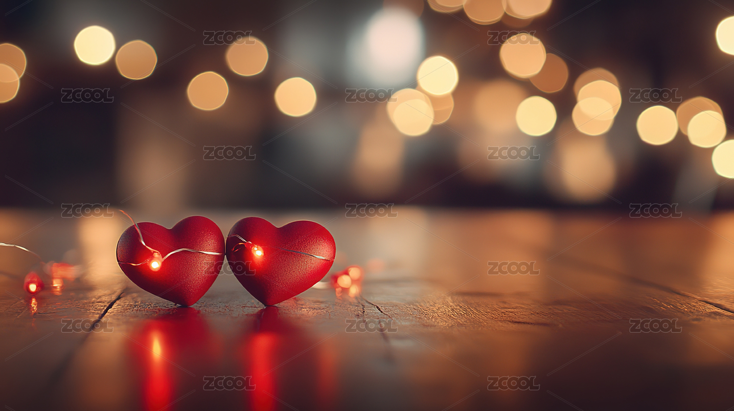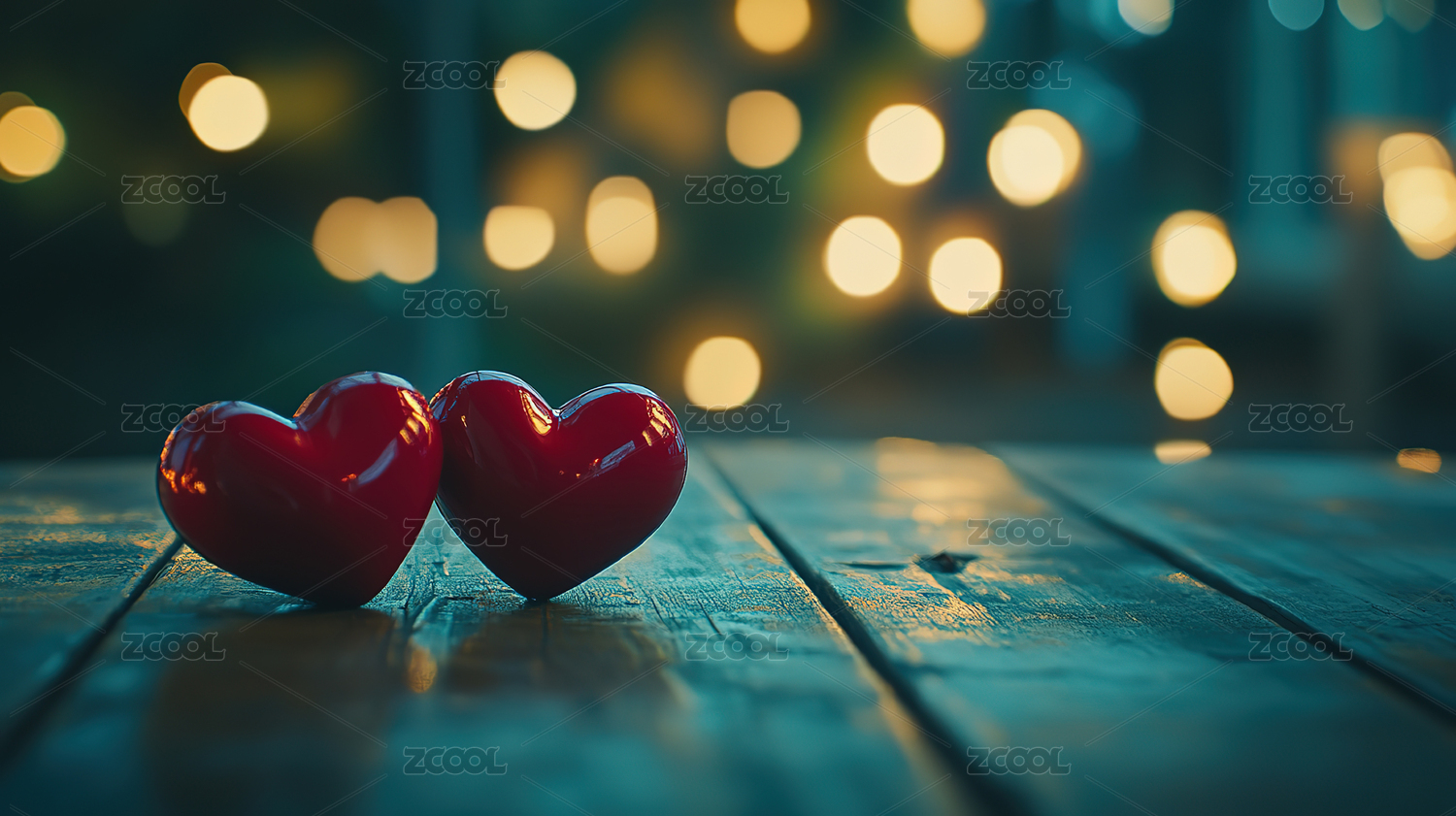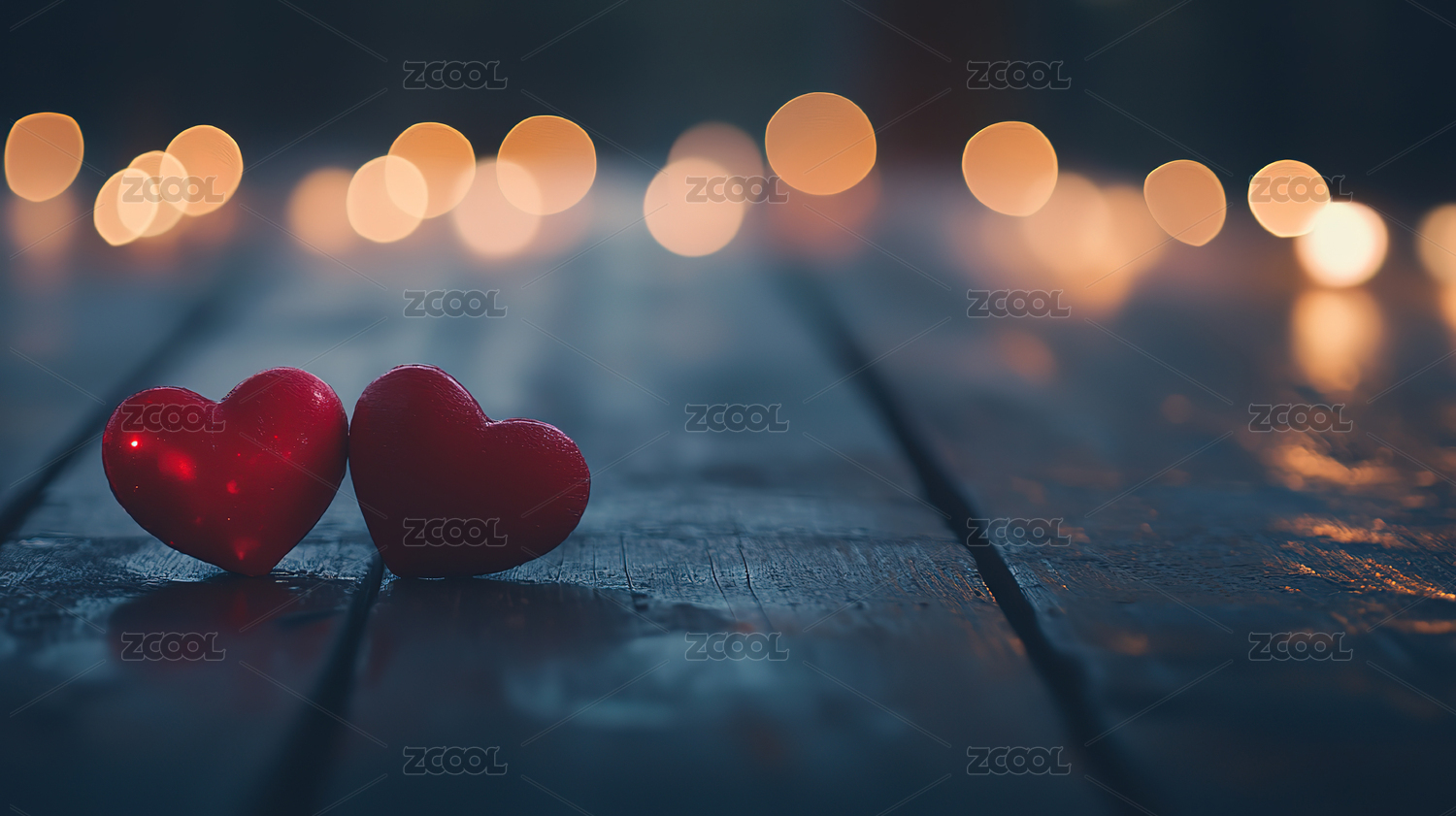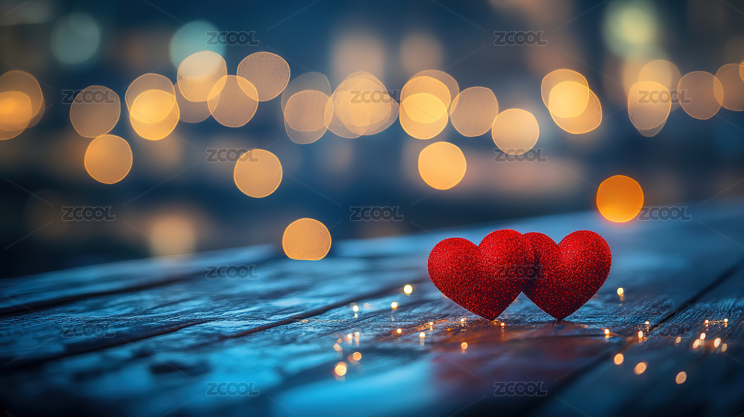 红心,爱心,两颗,红色,心形,物体,木质,背景,桌面,纹理
