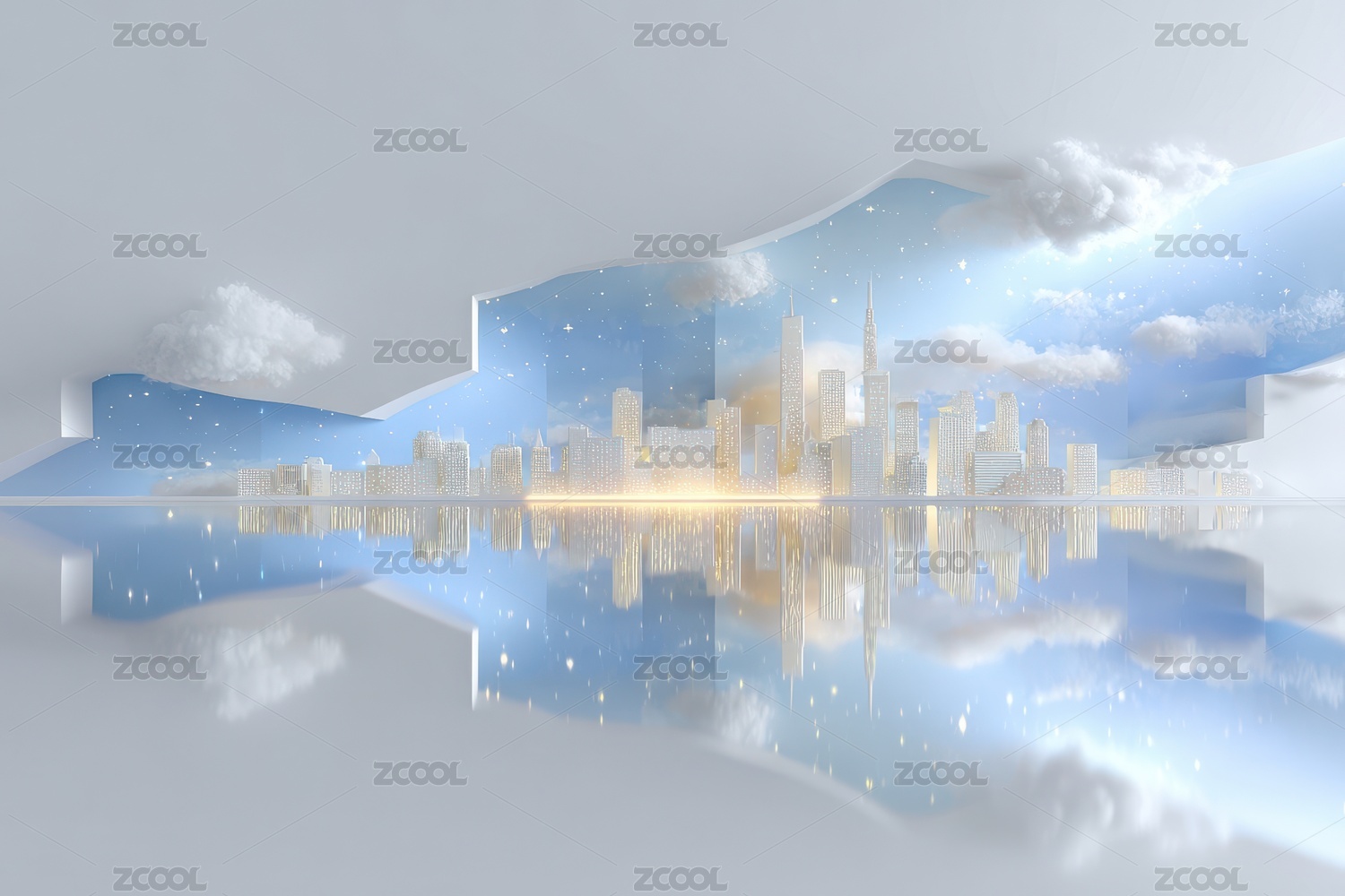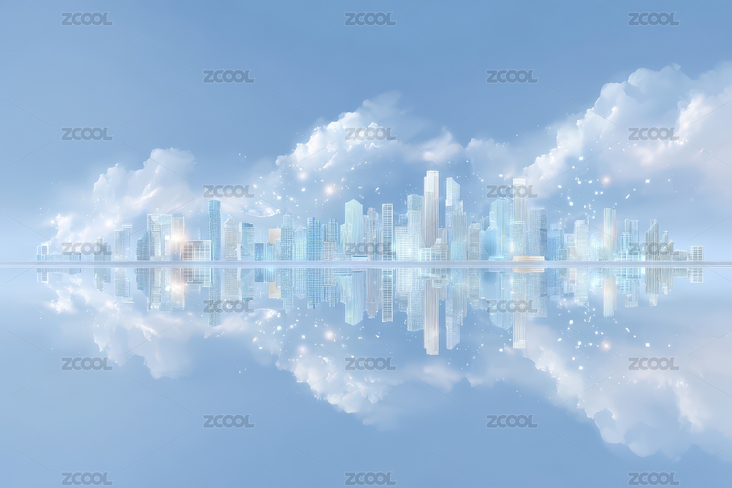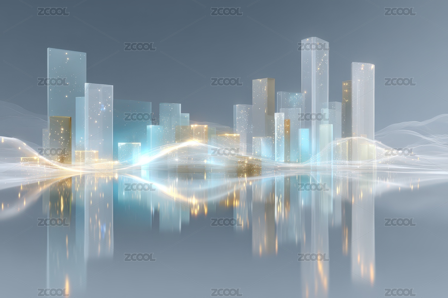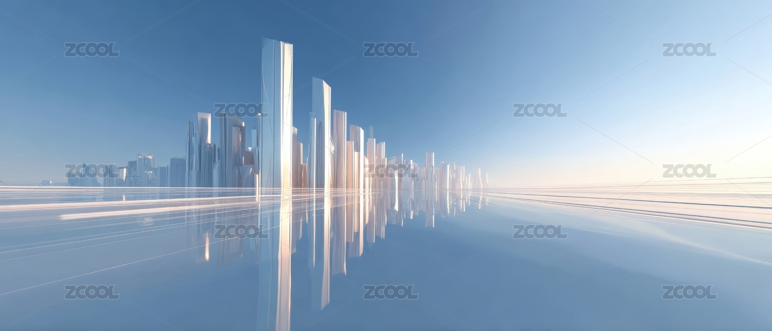 城市,未来,梦幻,光线,场景,建筑,镜像,反射,晶体,对称