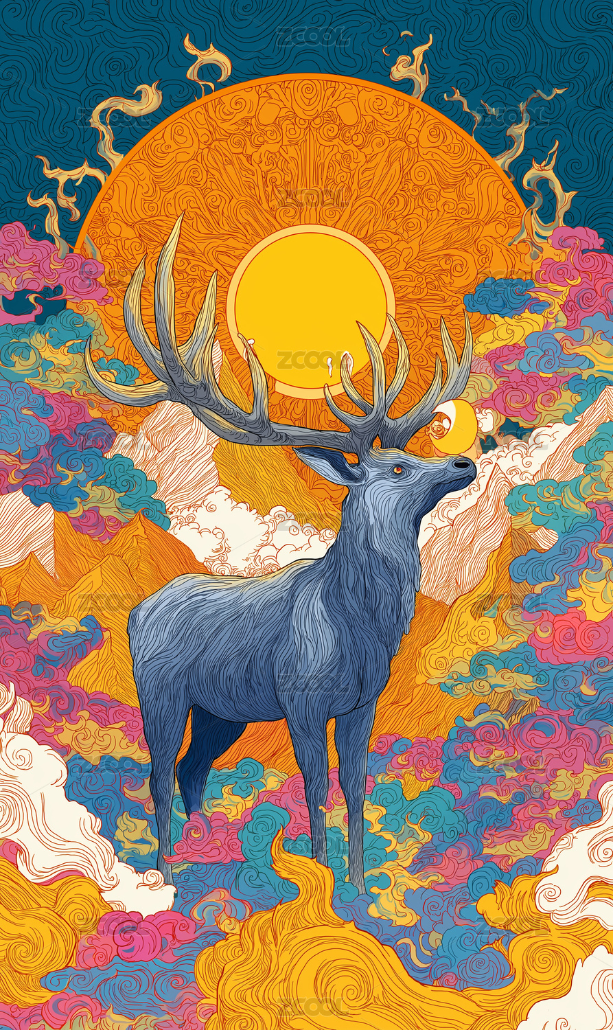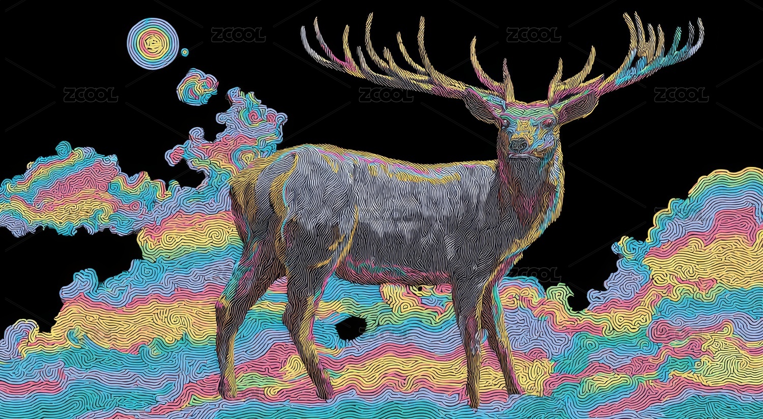 抽象,点彩,风格,鹿,云浪,图案,艺术,创作,手法,独特