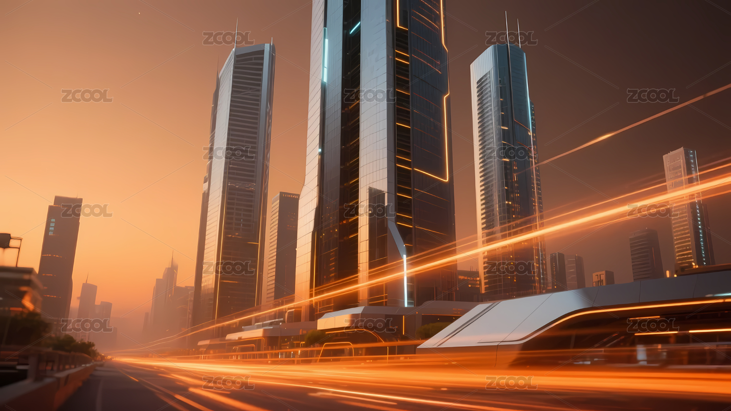 未来,建筑,科技,蓝色,光带,渐变,天空,现代,都市,摩天楼
