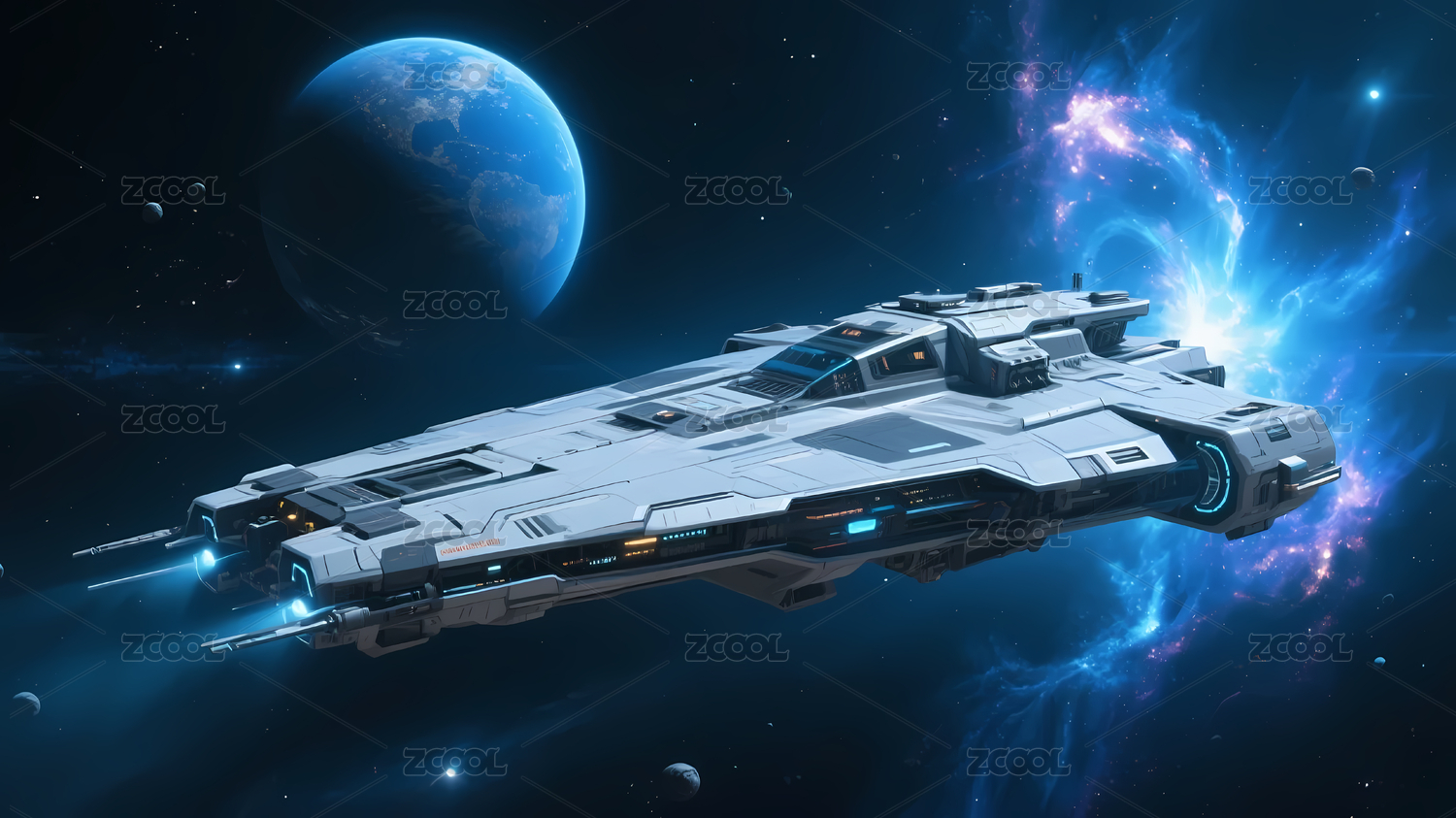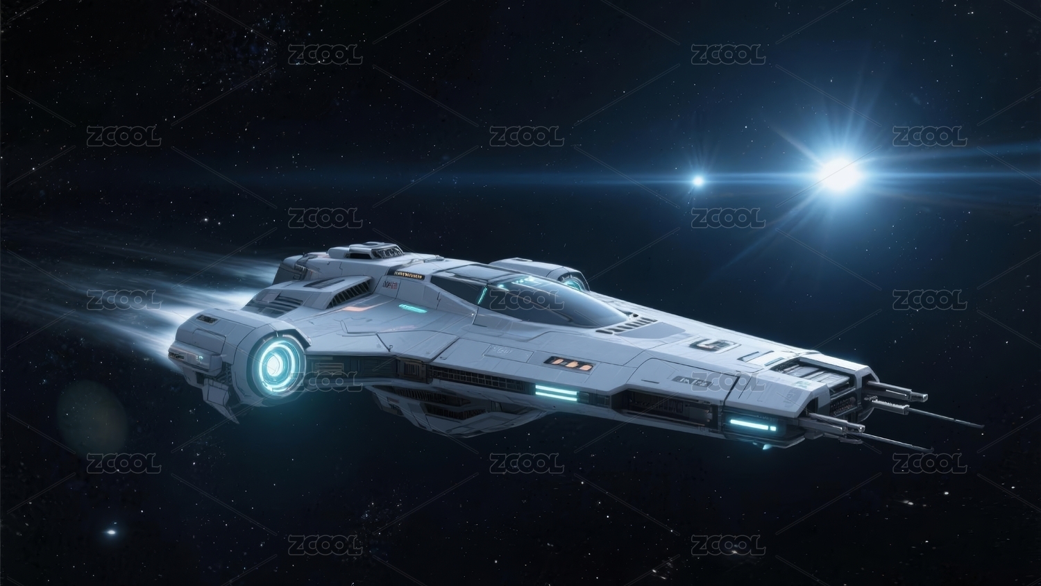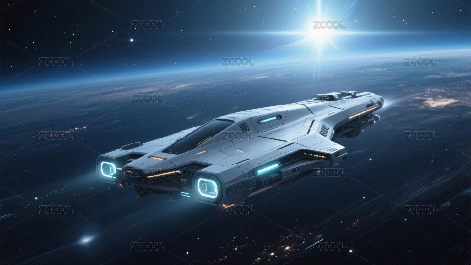 未来,蓝色,冷色,飞船,灯光,宇宙,神秘,白色,星空,科幻