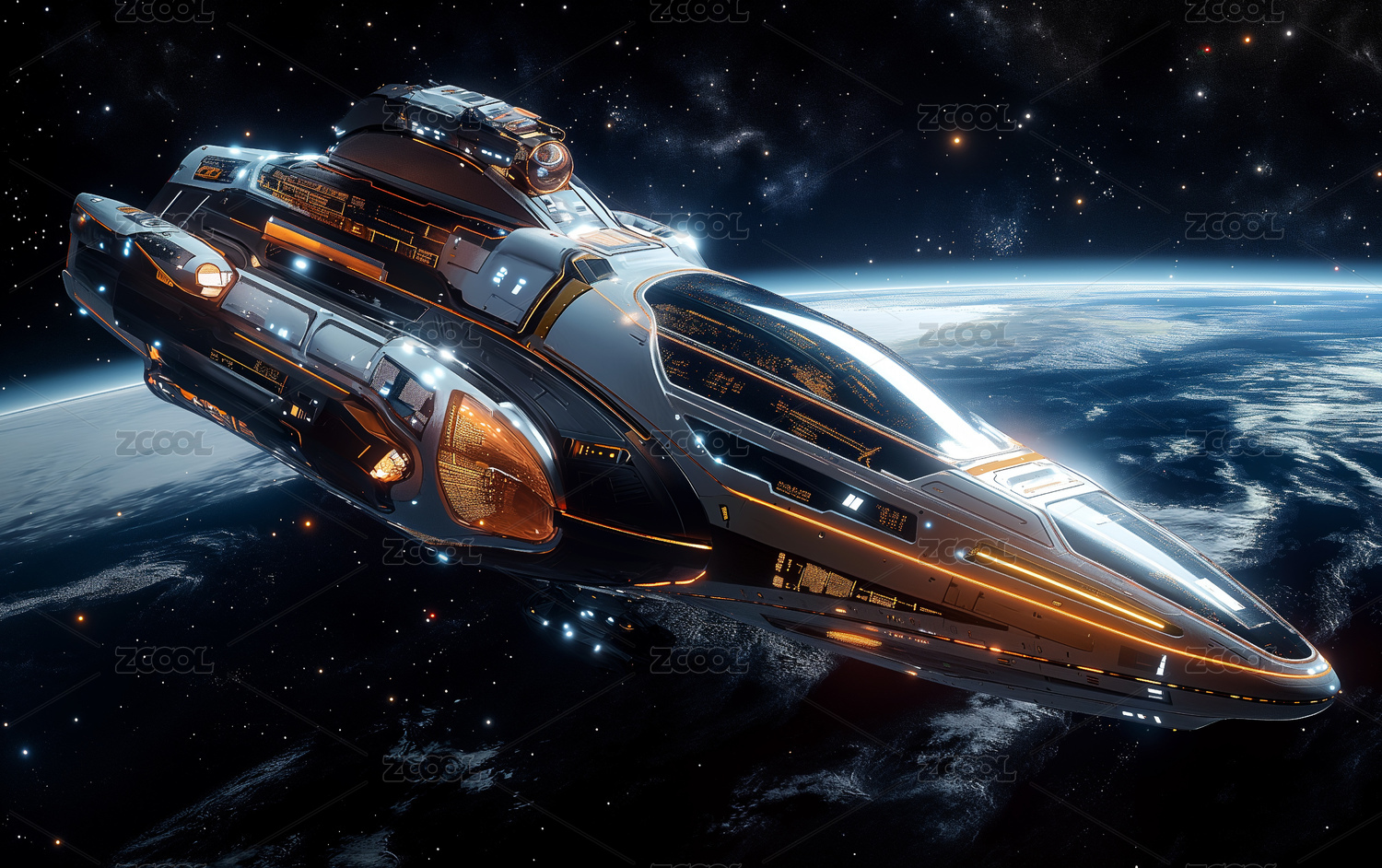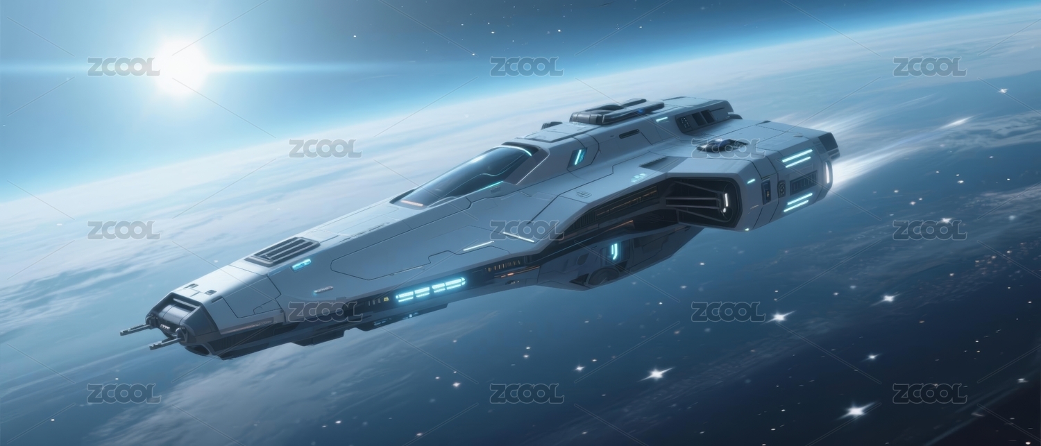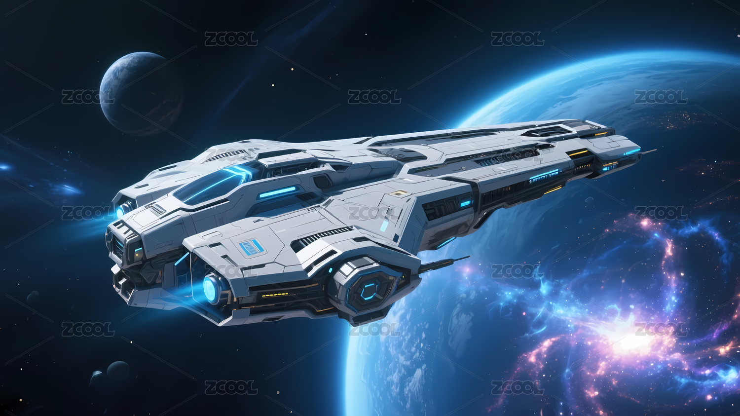 未来,蓝色,冷色,飞船,灯光,宇宙,神秘,白色,星空,科幻
