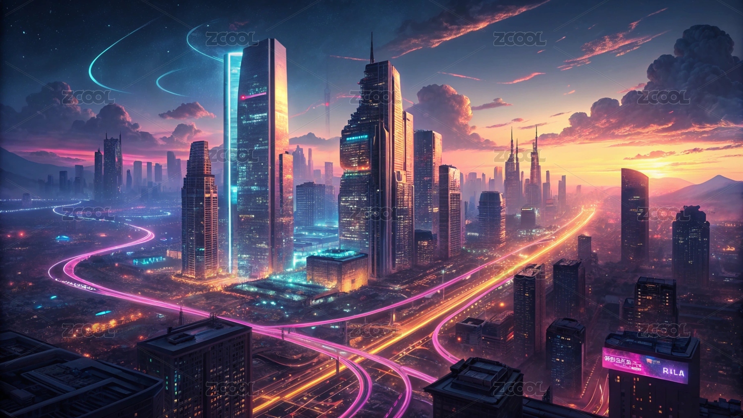 紫色,未来,飞行器,科幻,神秘,深蓝,梦幻,建筑,尖塔,星云