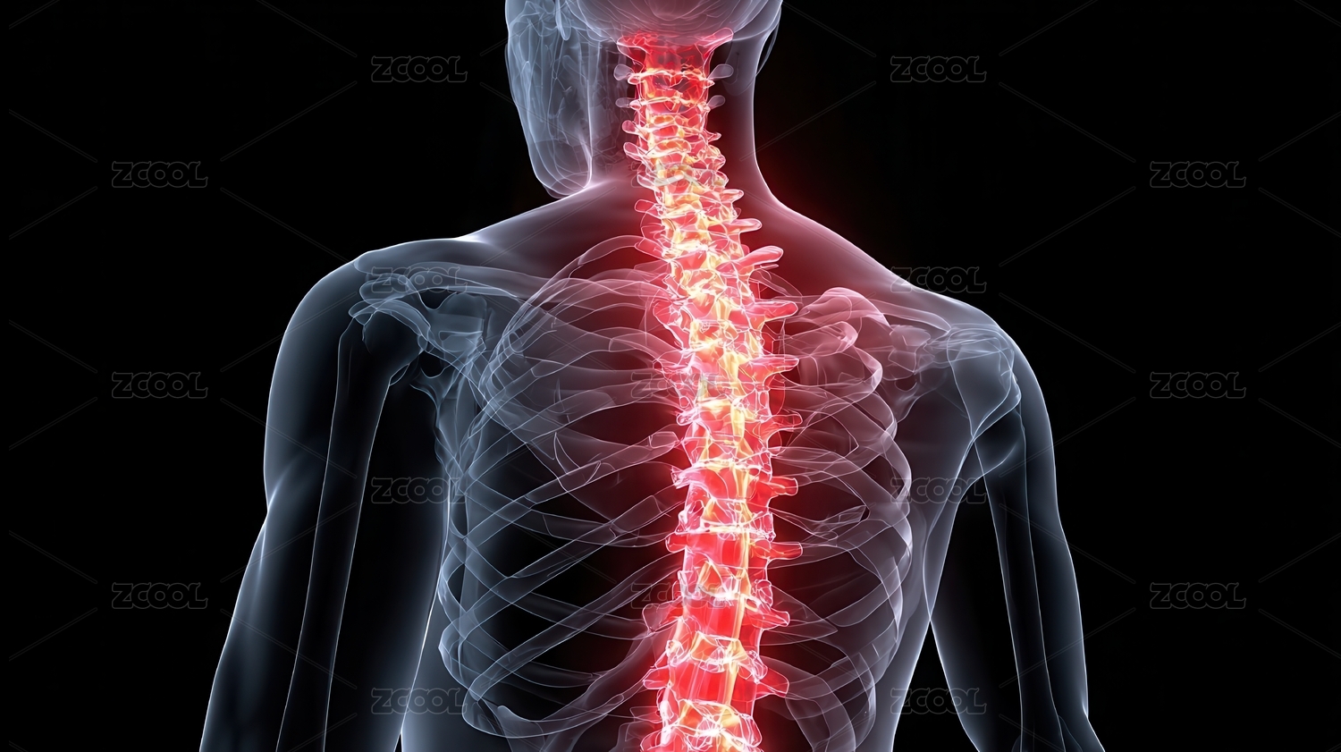 人体脊椎骨骼红色示意