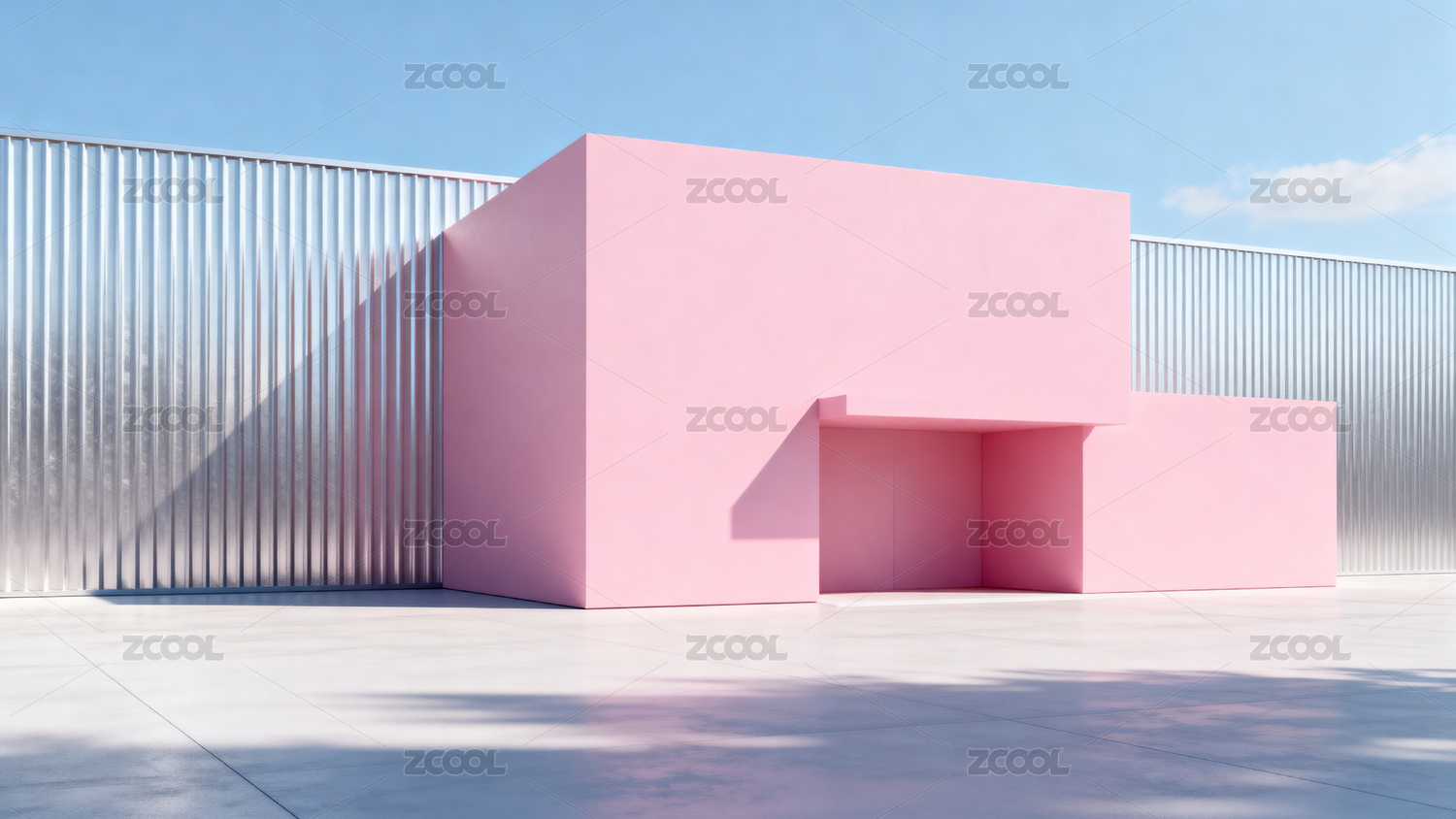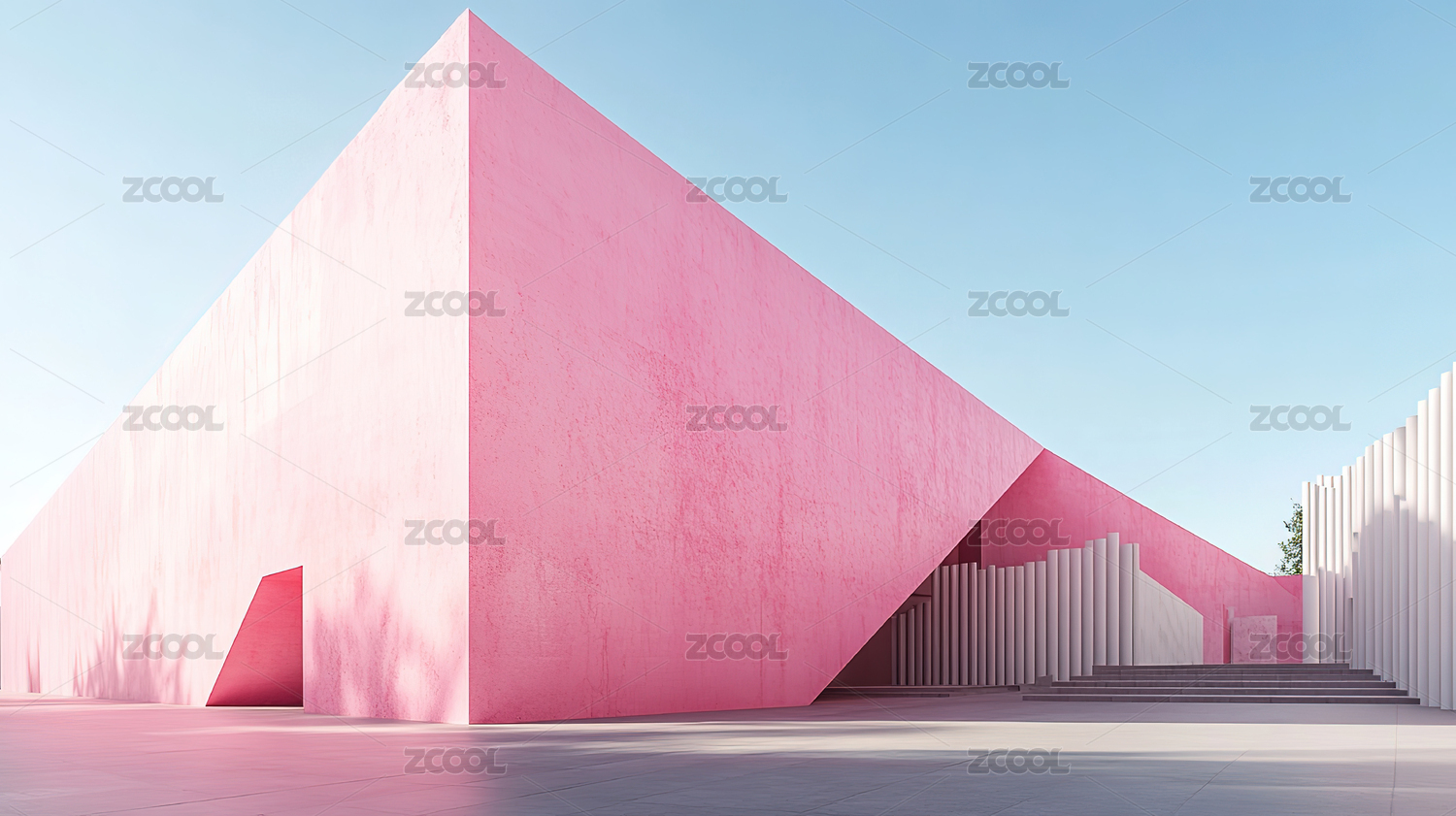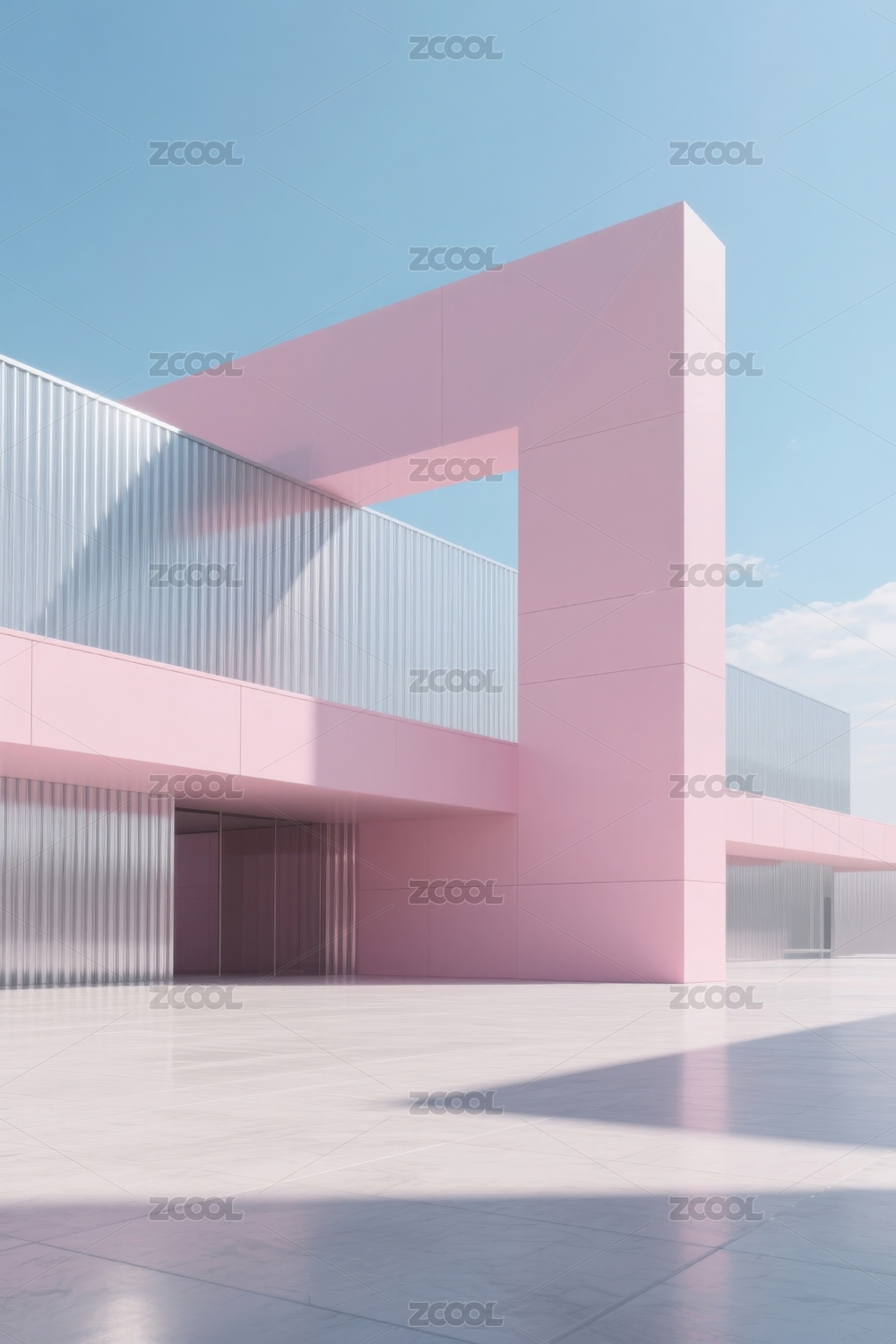 建筑,阳光,粉色,几何,墙面,阴影,蓝天,现代,简约,结构