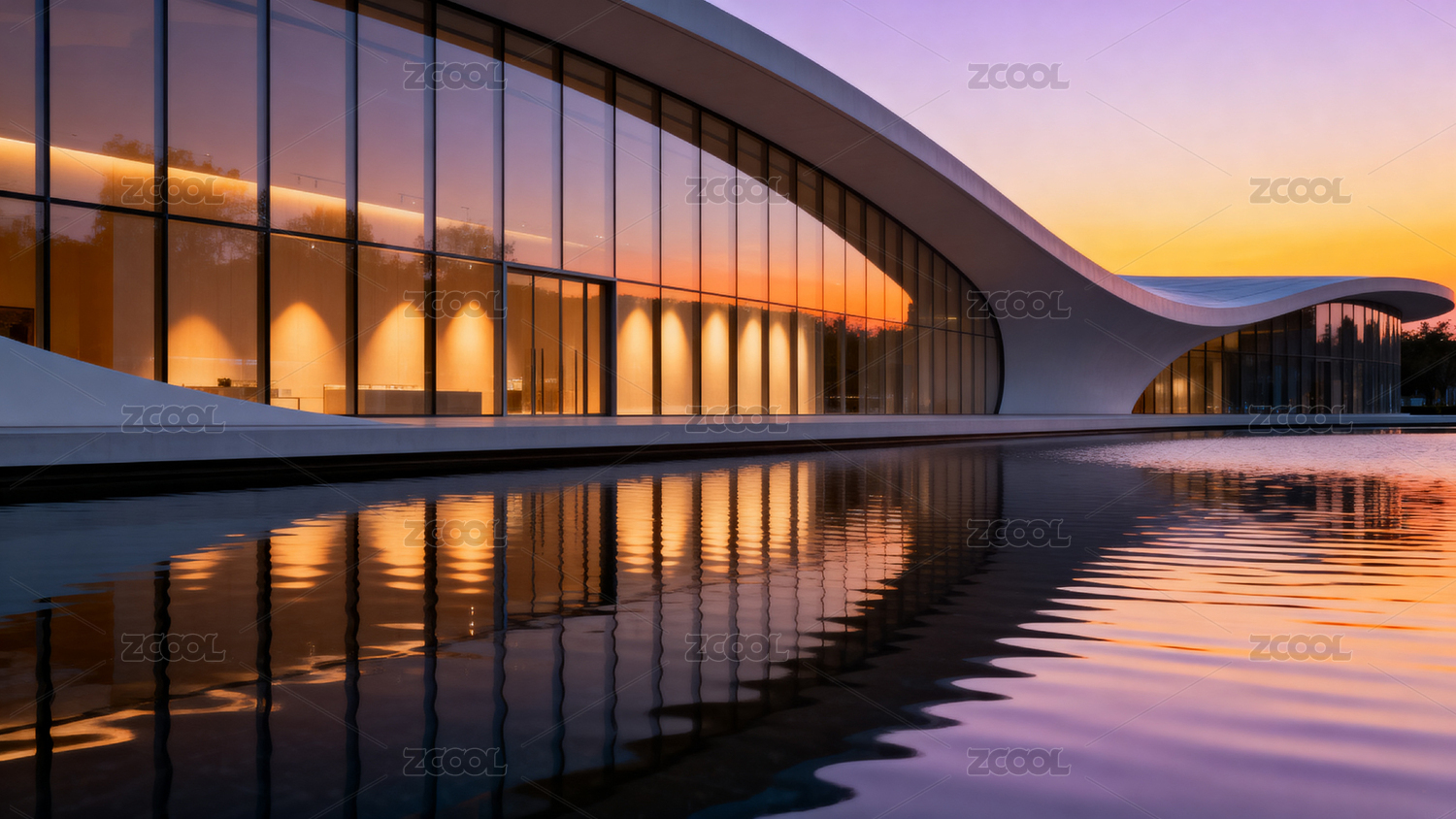 现代建筑日落倒影