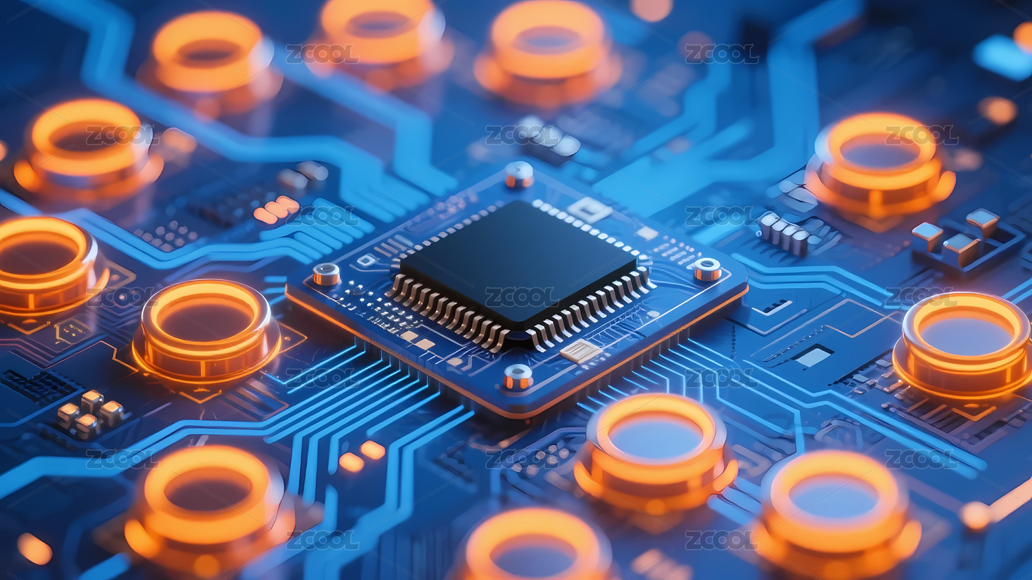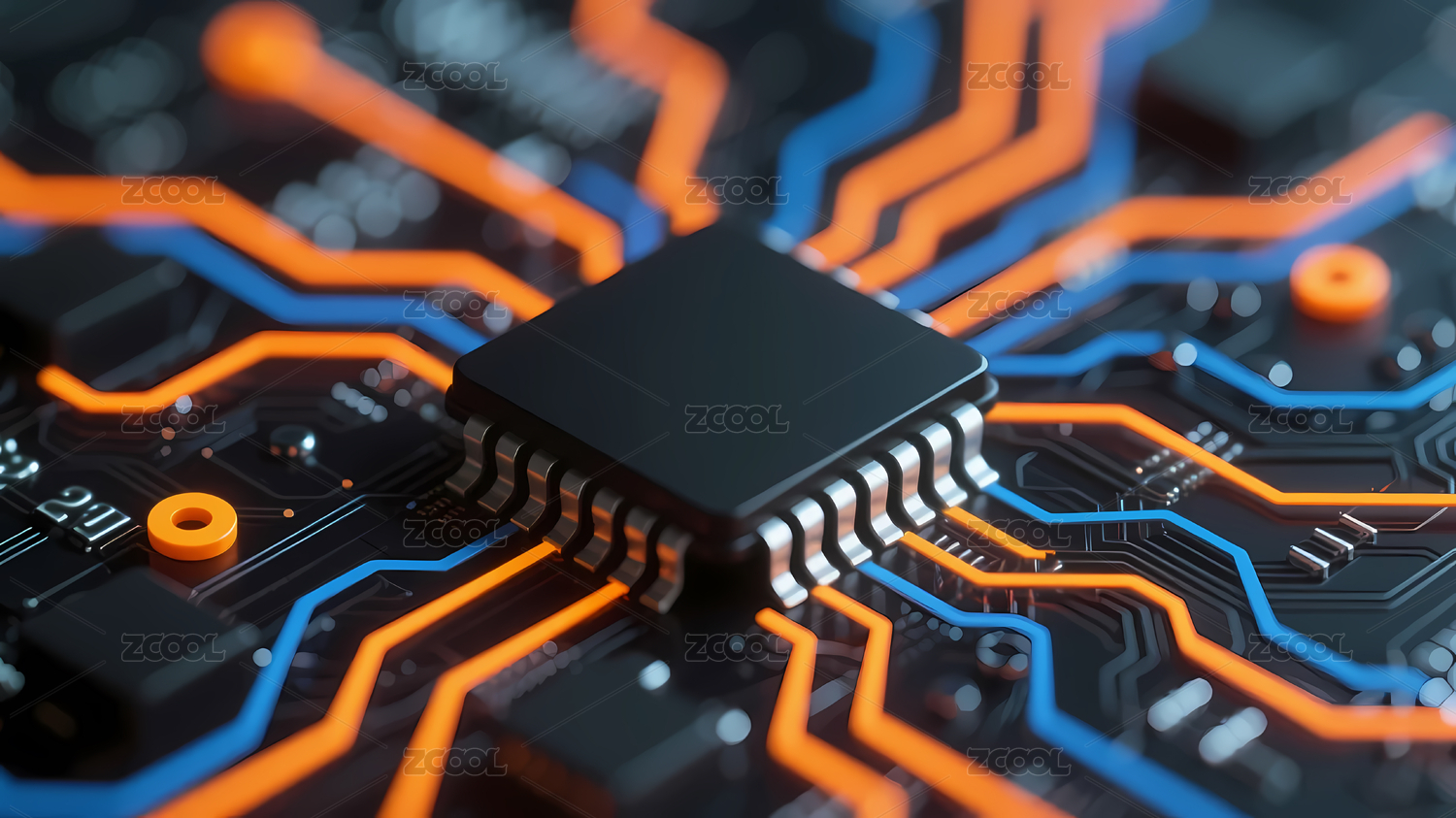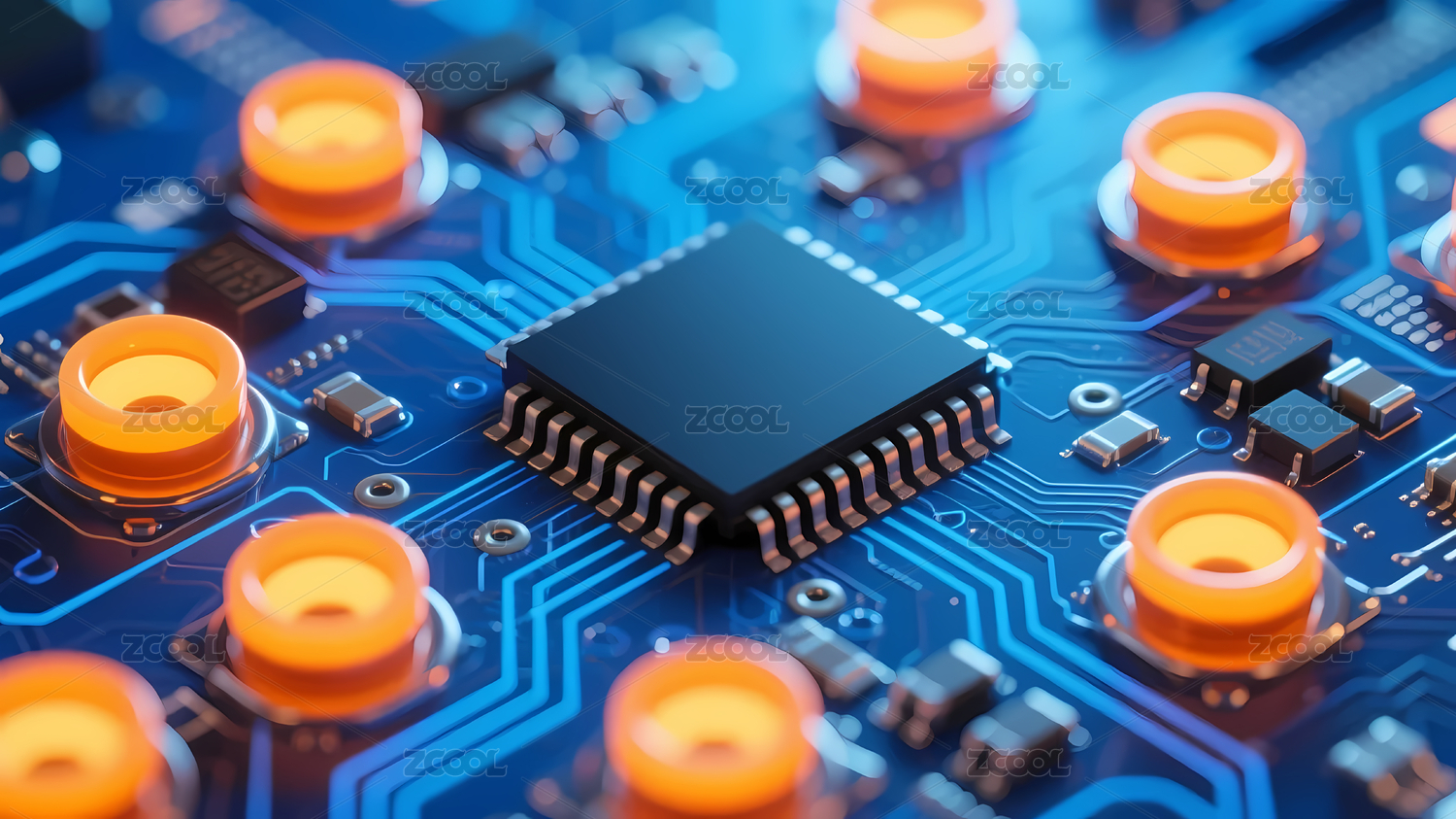 蓝色,电路板,芯片,焊点,橙色,电子,科技,硬件,元件,线路