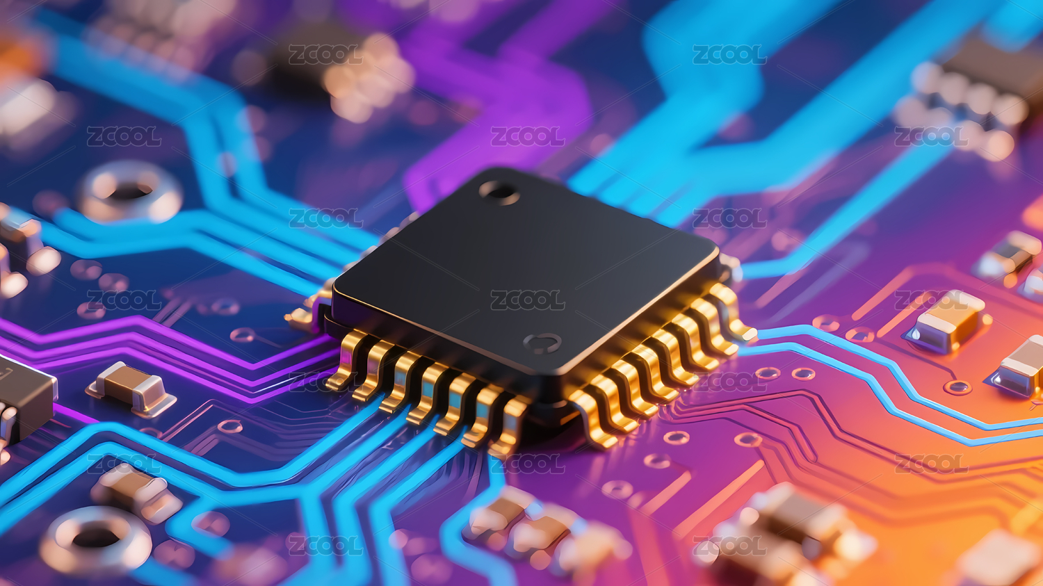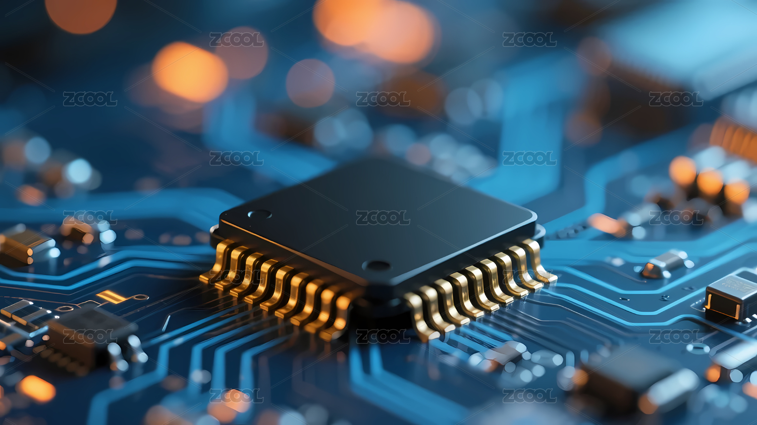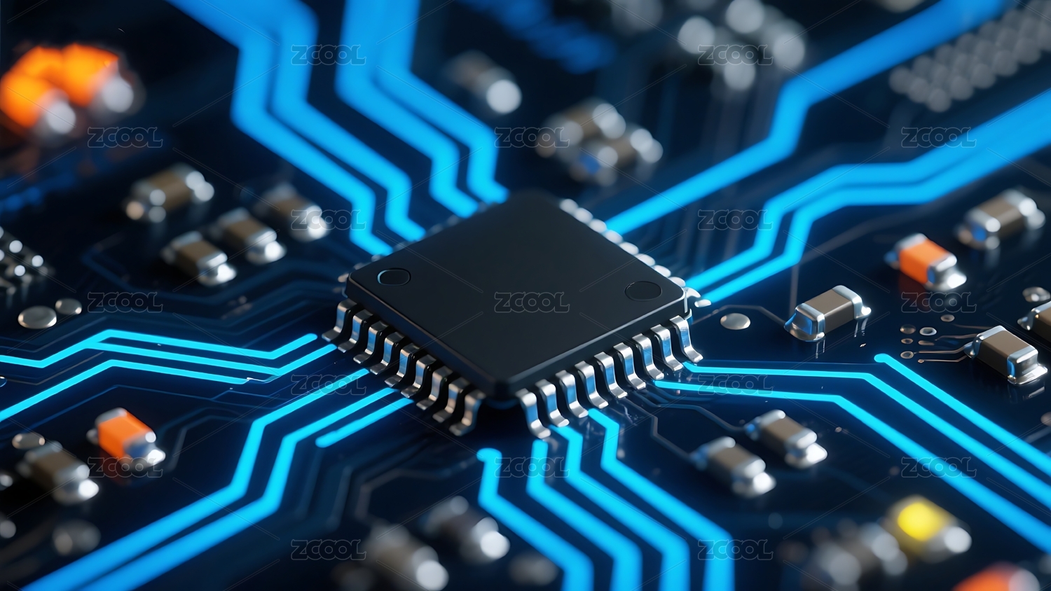 蓝色,电路板,芯片,焊点,橙色,电子,科技,硬件,元件,线路