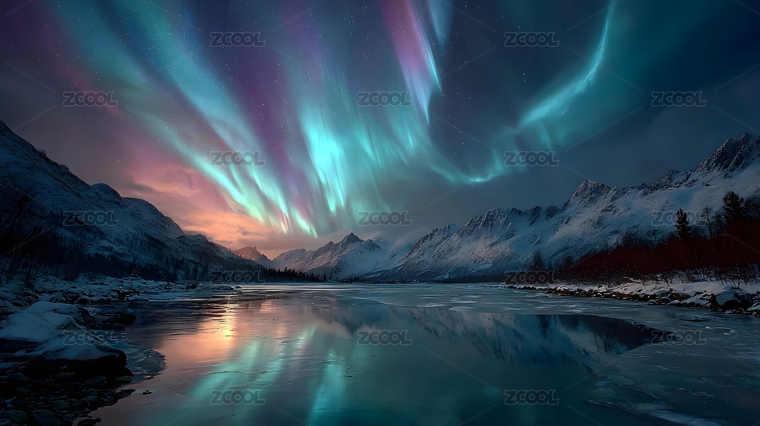 主视觉,商业,壁纸,背景,自然,极光,绚丽,雪山,湖泊,美景