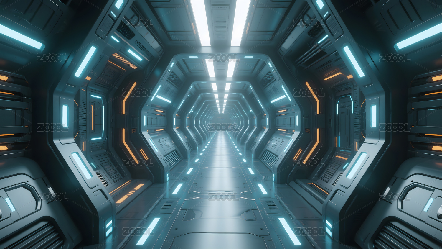 未来科幻蓝白走廊灯
