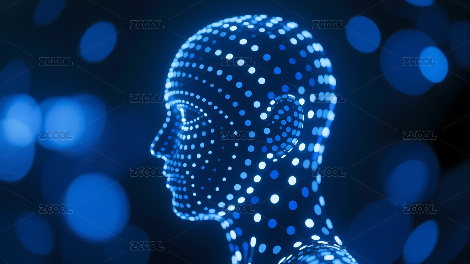 蓝色光点构成的未来人头轮廓