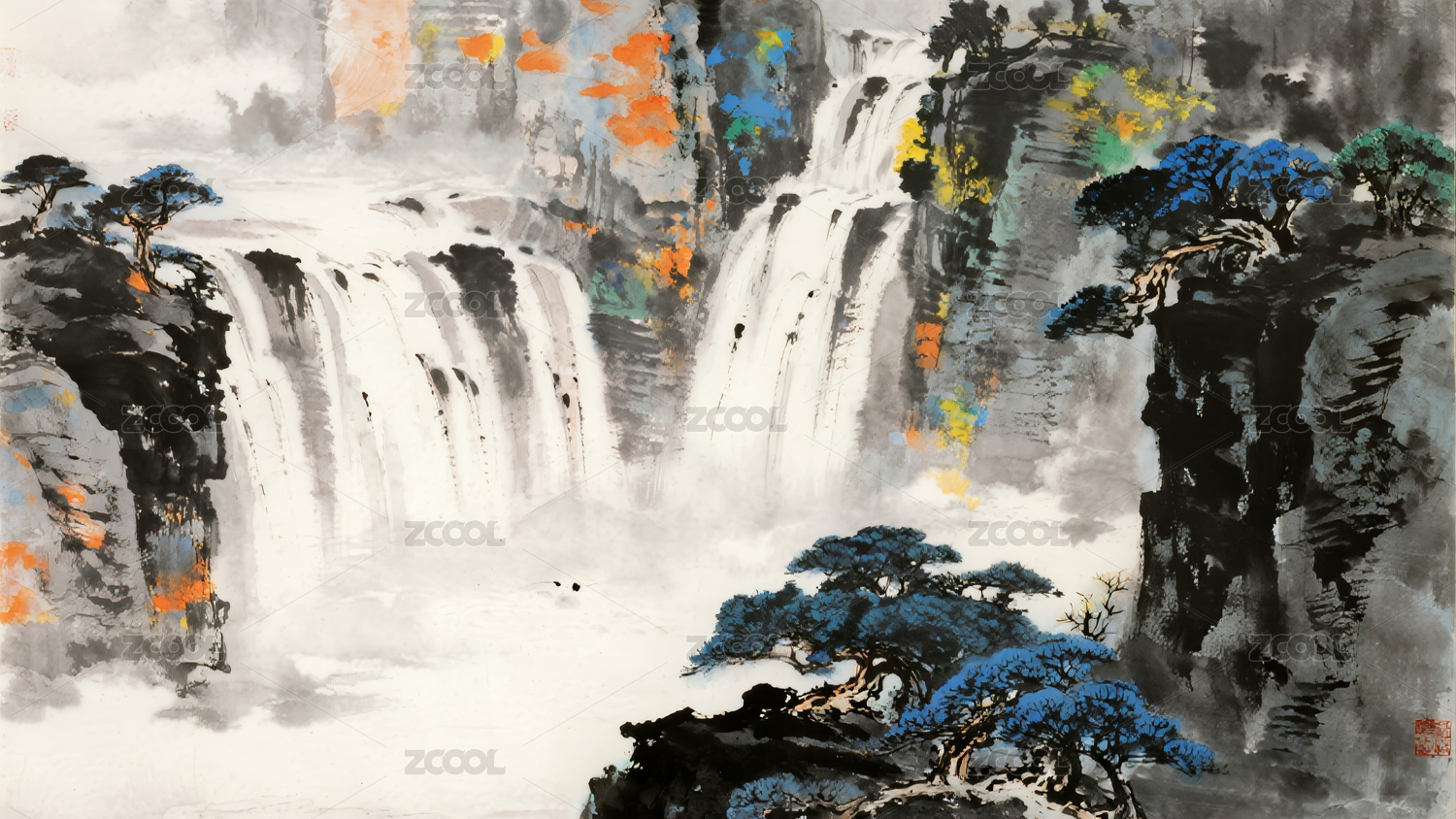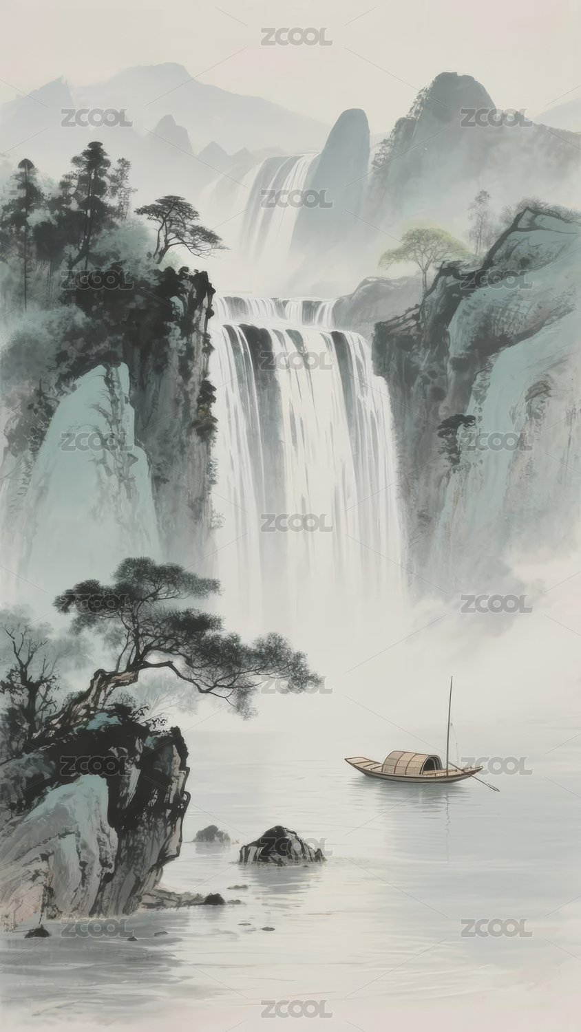 山水瀑布国画风景