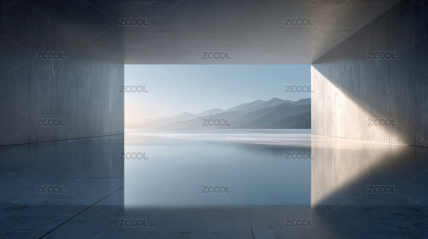 山脉,天空,阳光,水面,湖,建筑,地面,现代,混凝土,简约