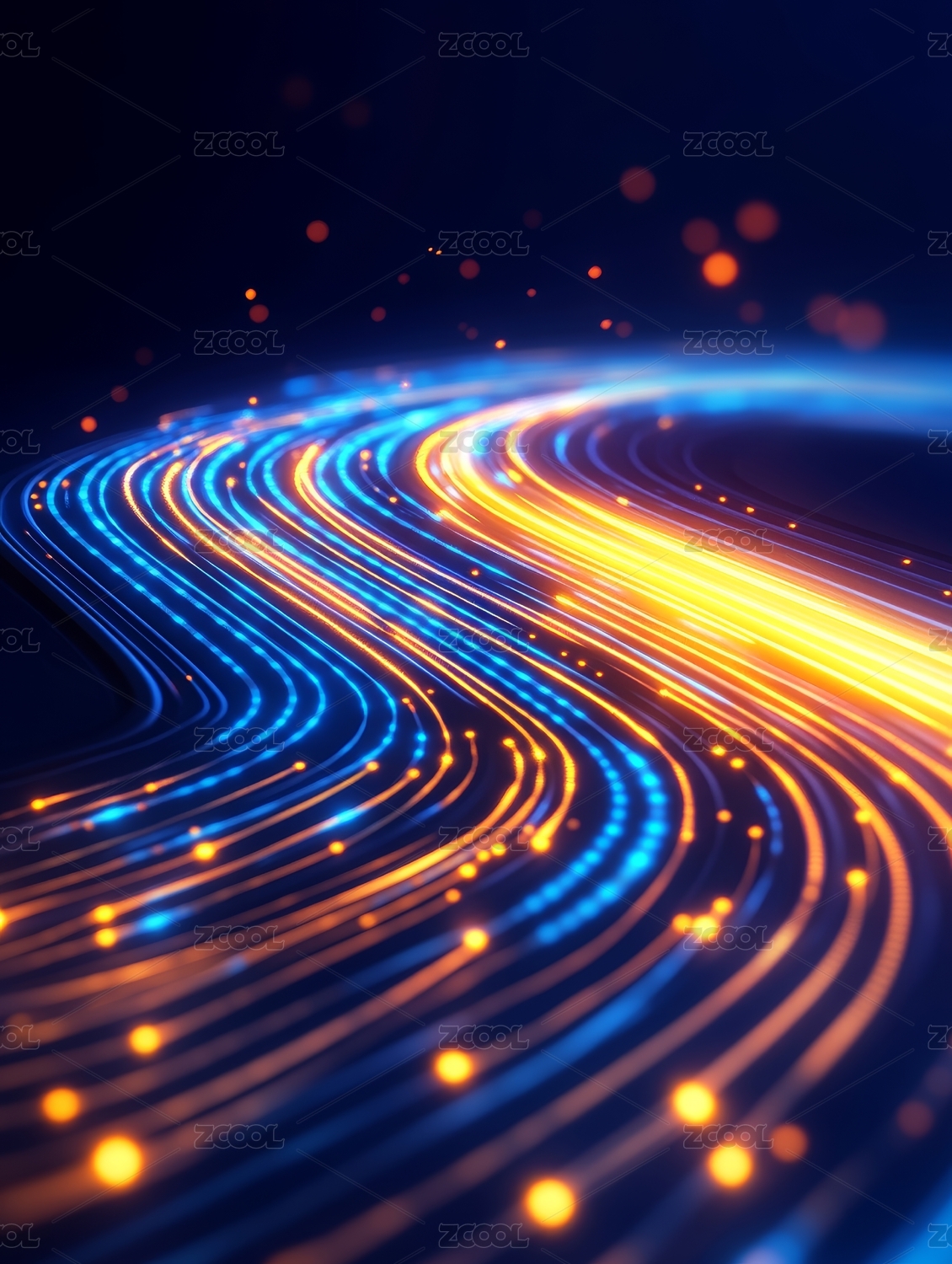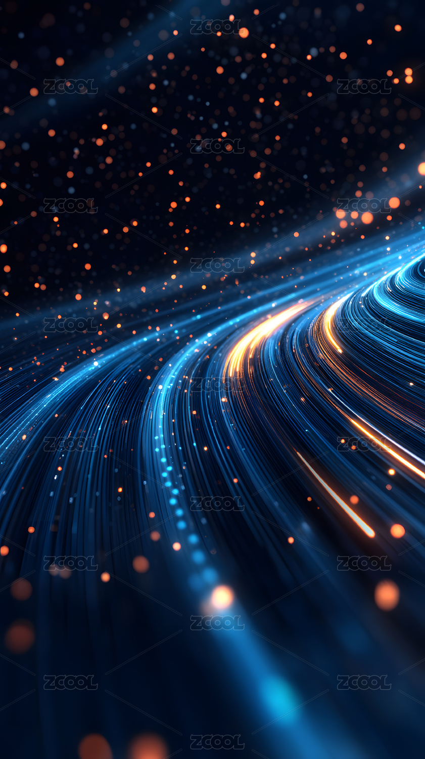 蓝色光流与橙色粒子交织的动态轨迹