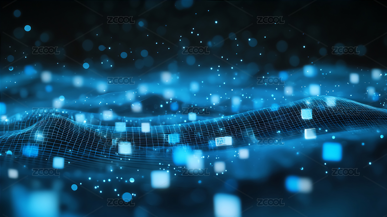 蓝色商务科技立方体粒子光效空间主视觉背景