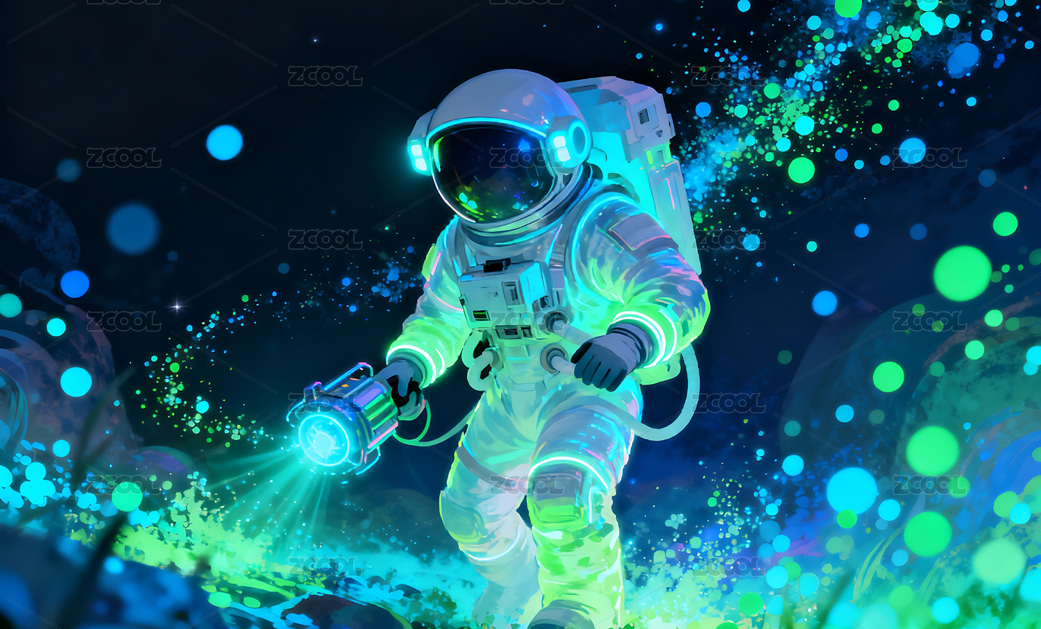奇幻,梦幻,赛博朋克,太空,宇航员,插画,光效,背景,壁纸
