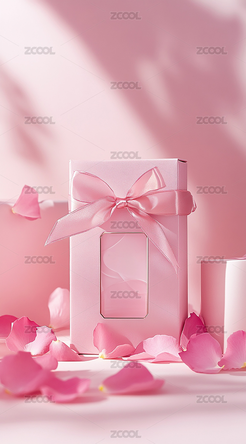 粉色礼盒与花瓣装饰