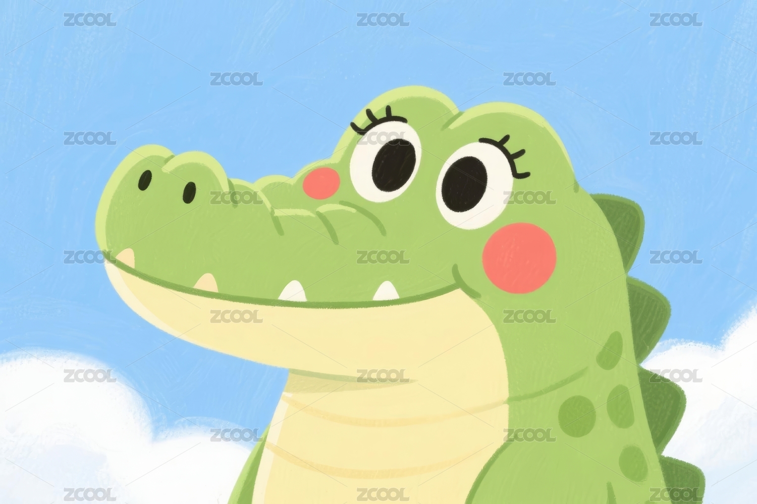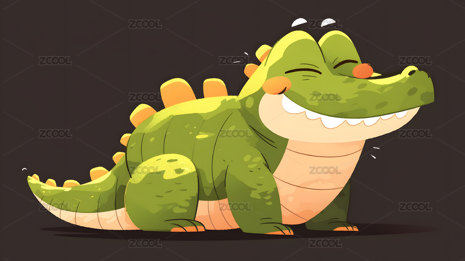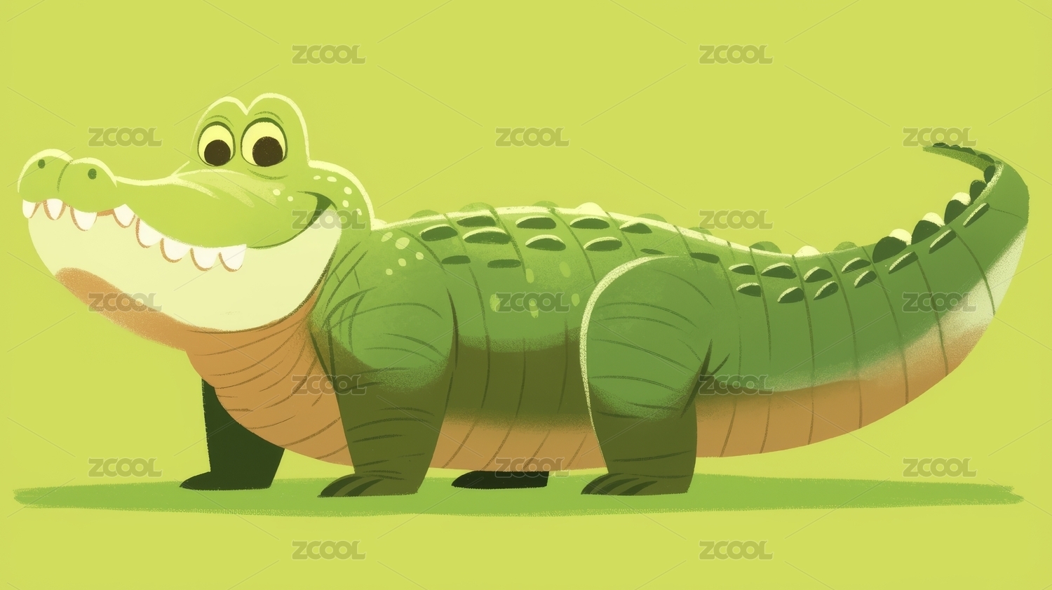鳄鱼,卡通,插画,可爱,微笑,动物,形象,设计,图形,绿色