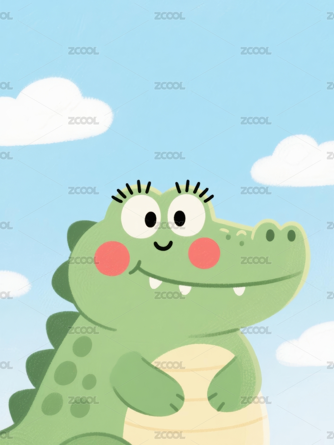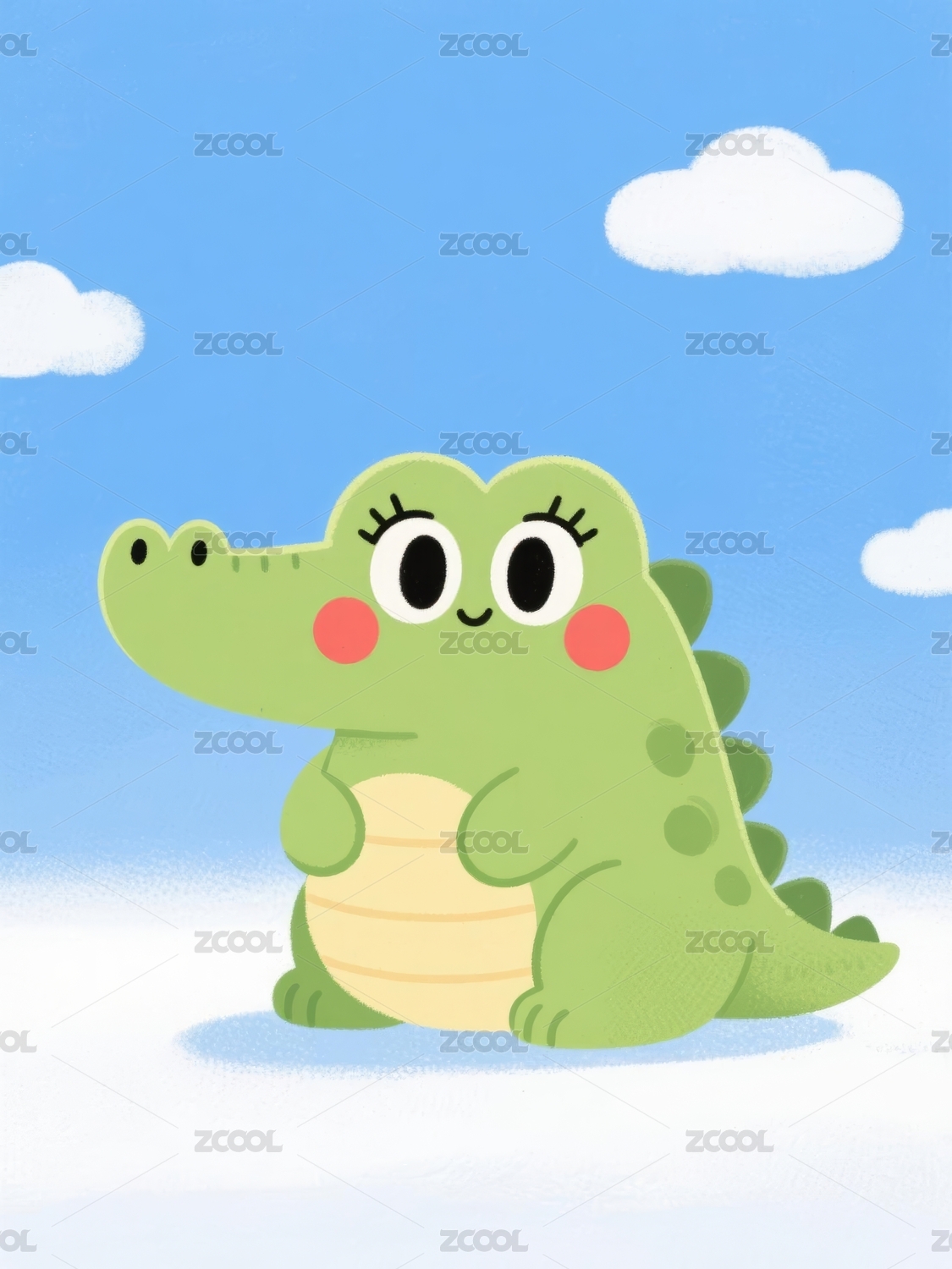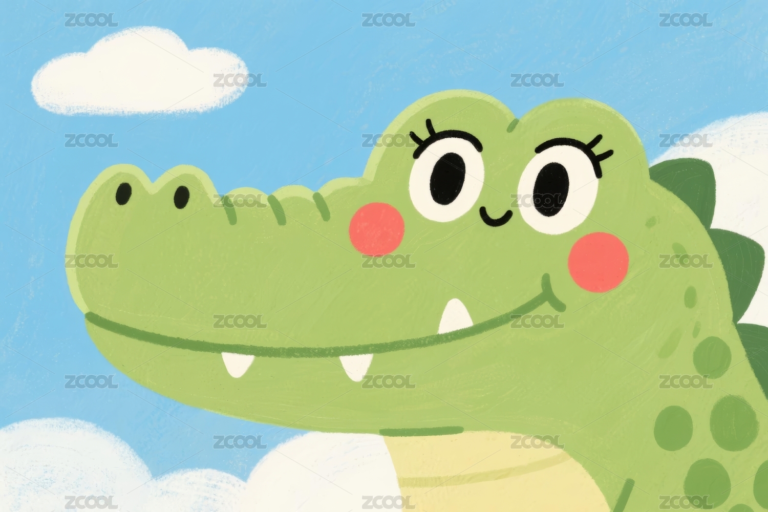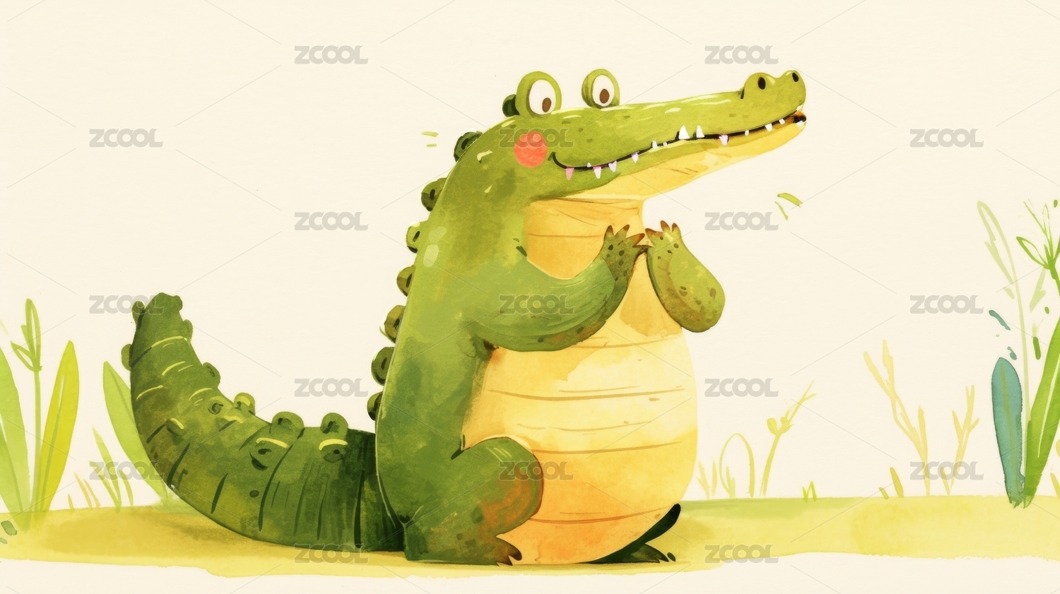 鳄鱼,卡通,插画,可爱,微笑,动物,形象,设计,图形,绿色