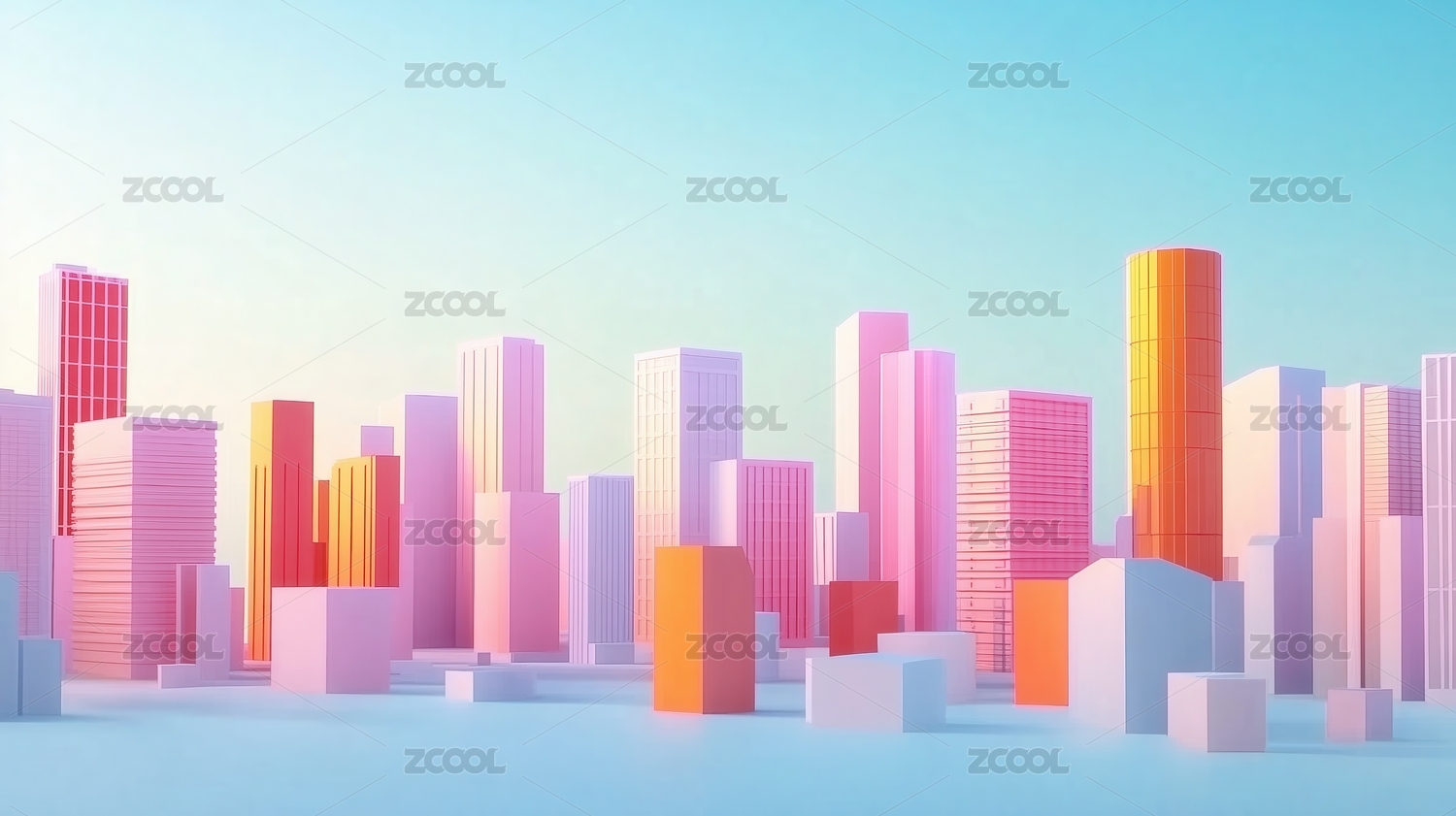 橙色,蓝色,建筑,简洁,红色,城市,设计,现代,渐变,模型