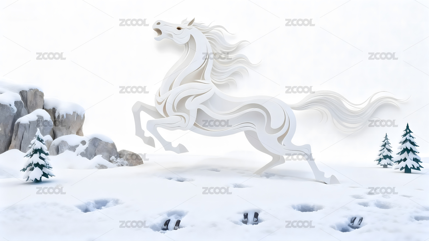 生肖马剪纸风吉祥装饰图